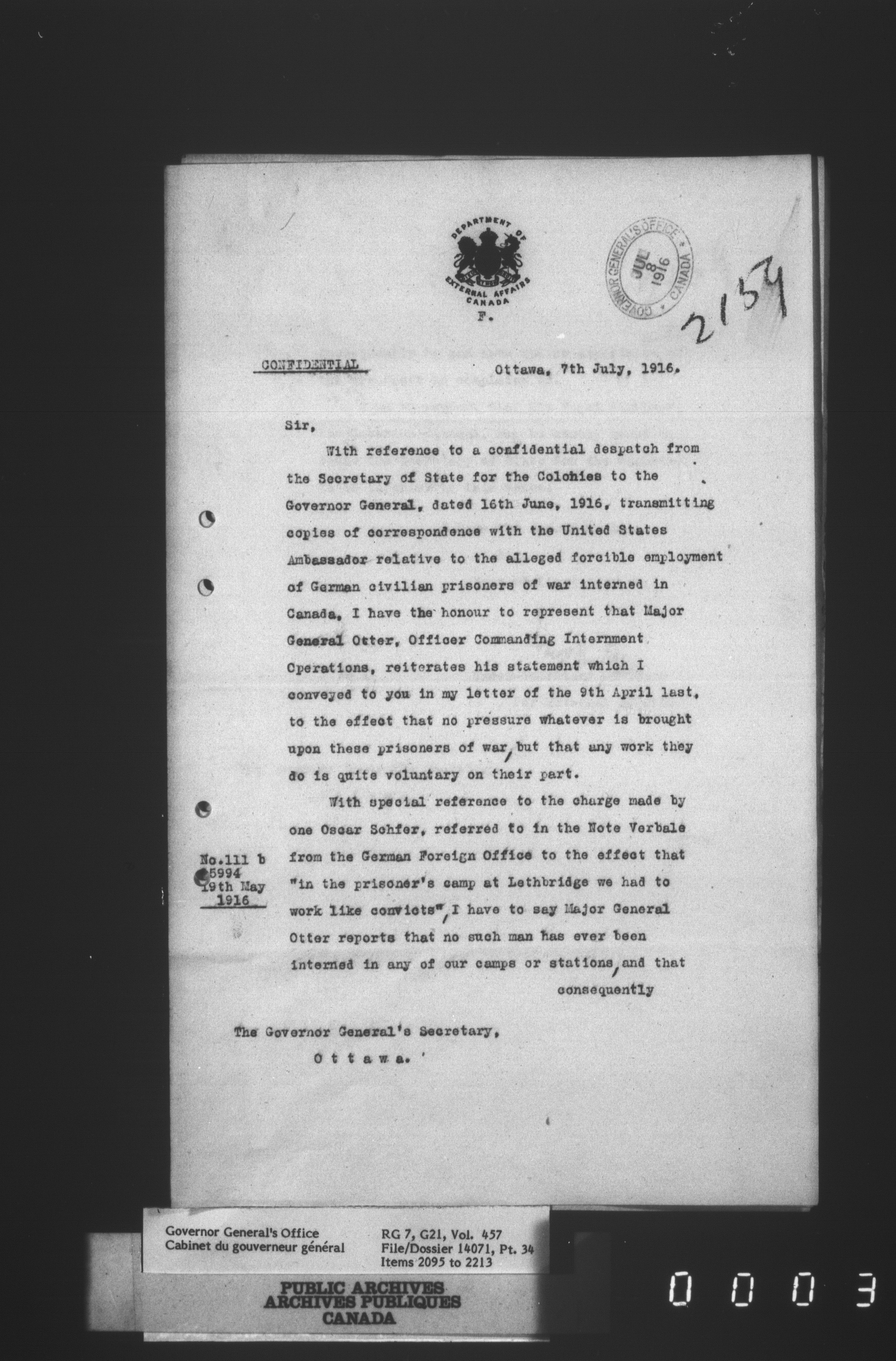 [Governor General] numbered files - 2310