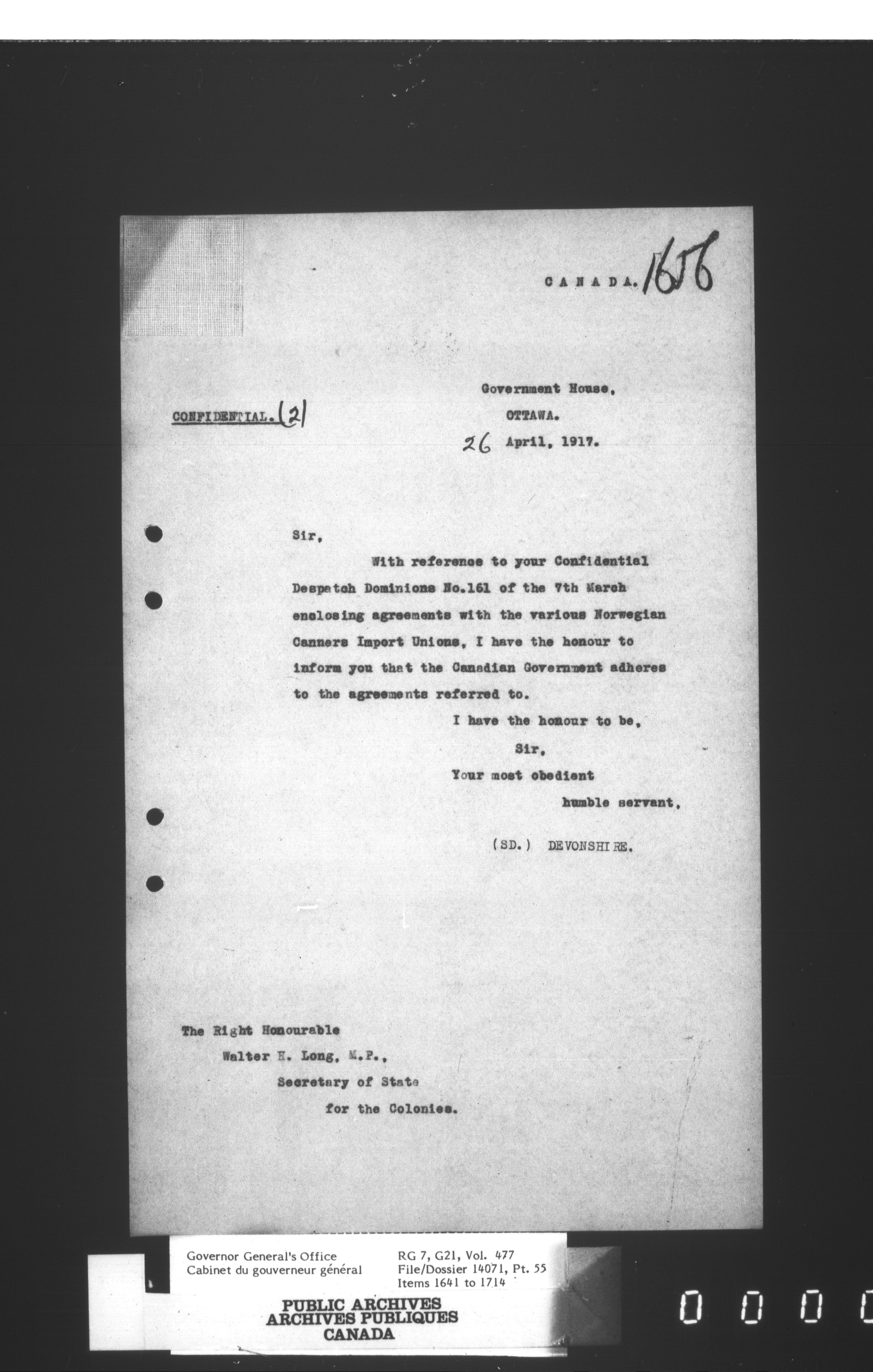 [Governor General] numbered files - 2315