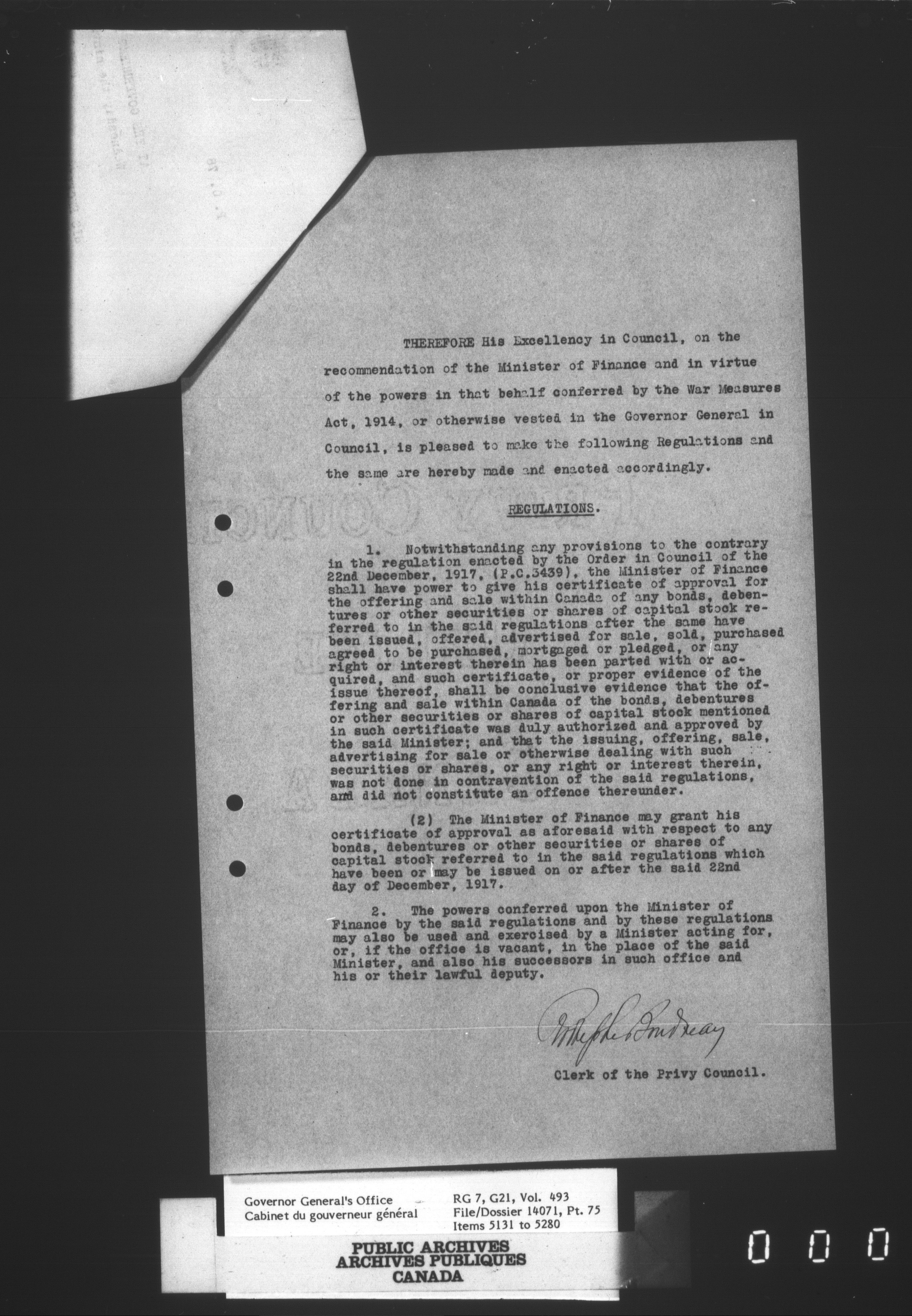 [Governor General] numbered files - 2319