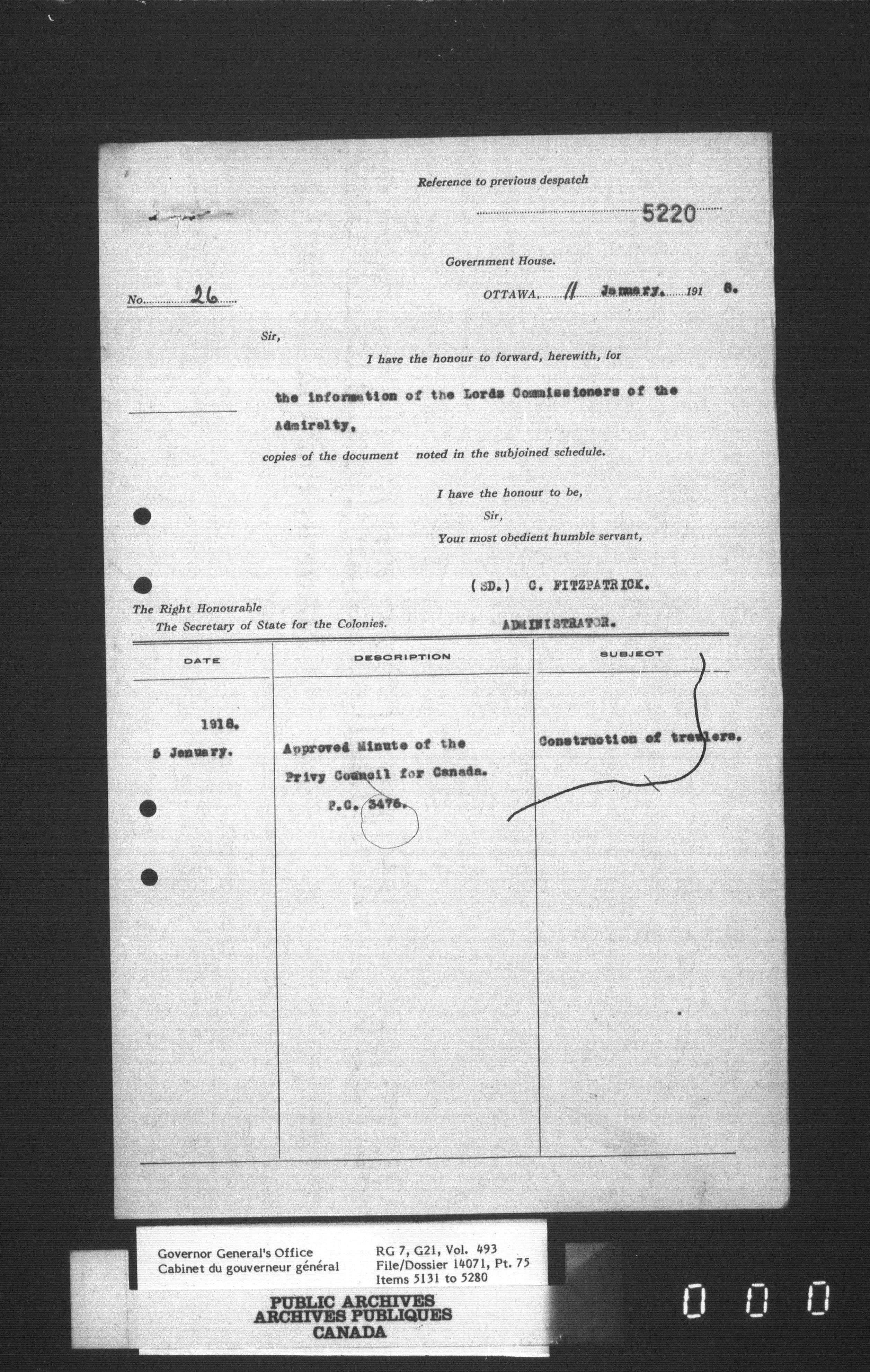 [Governor General] numbered files - 2319