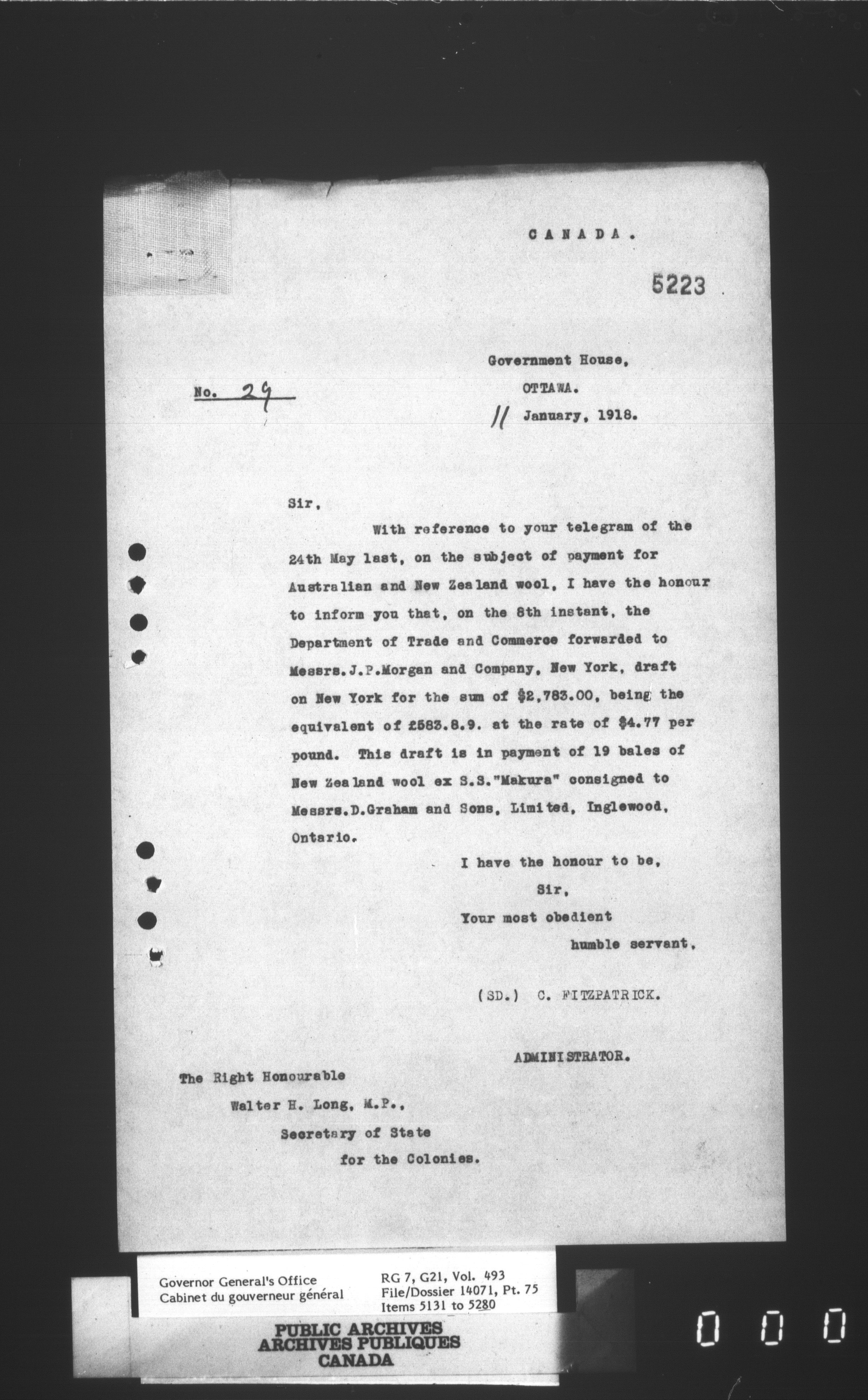 [Governor General] numbered files - 2319