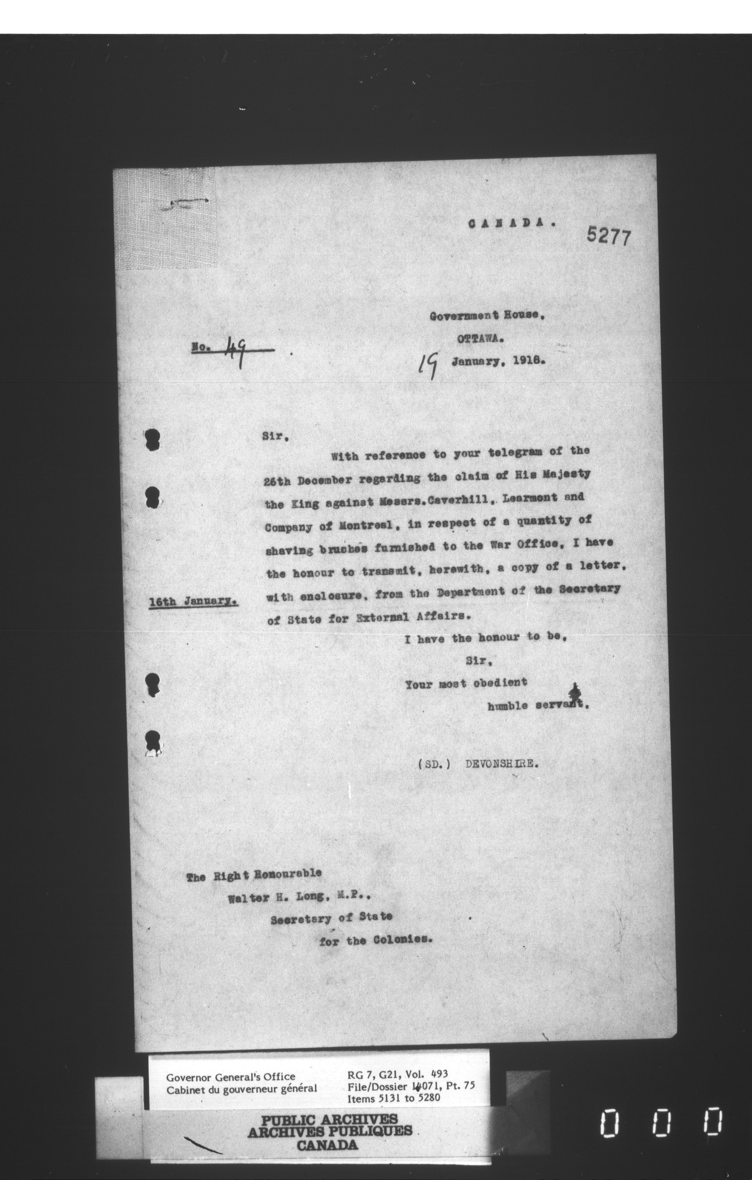 [Governor General] numbered files - 2320