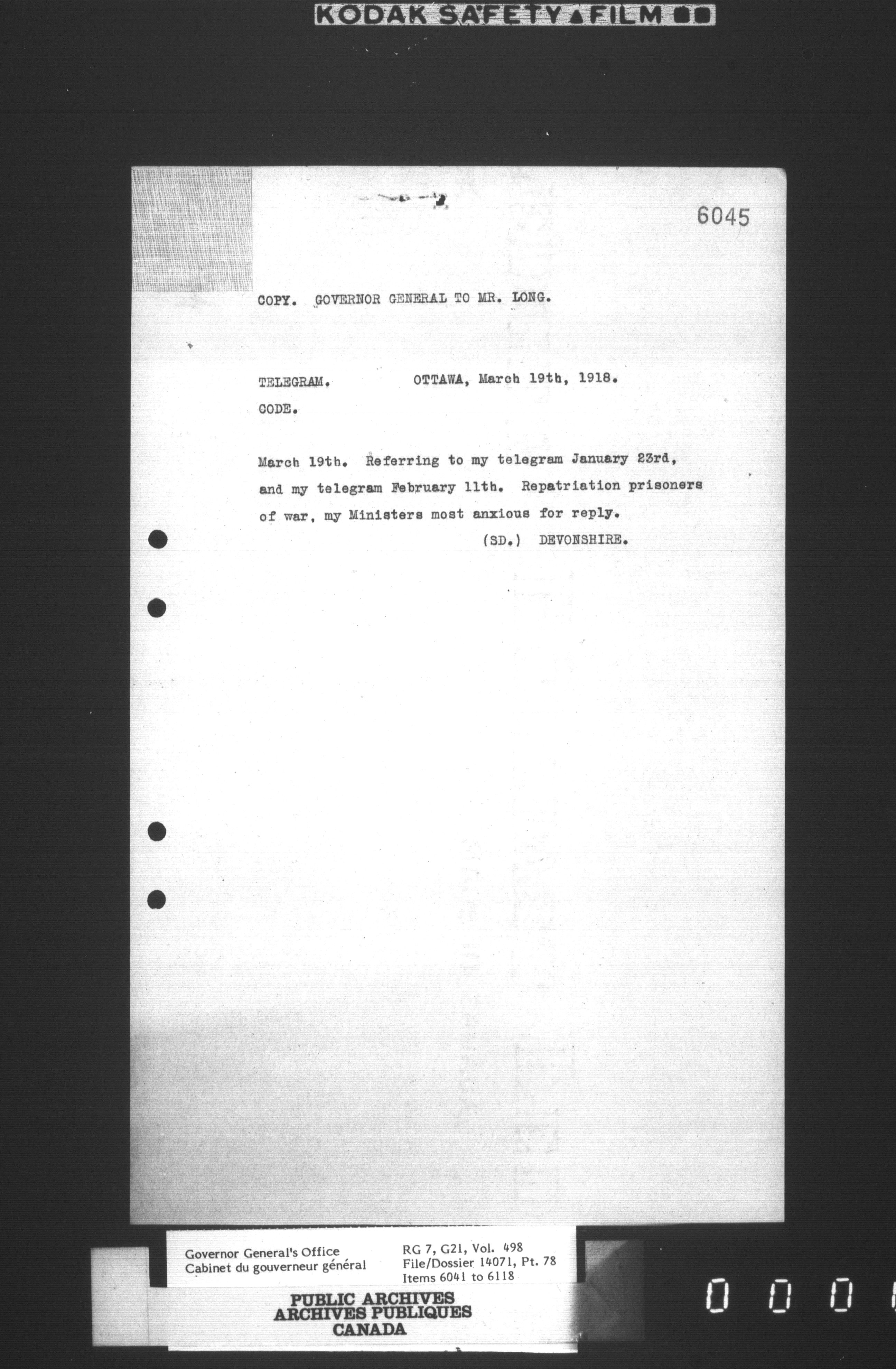 [Governor General] numbered files - 2321