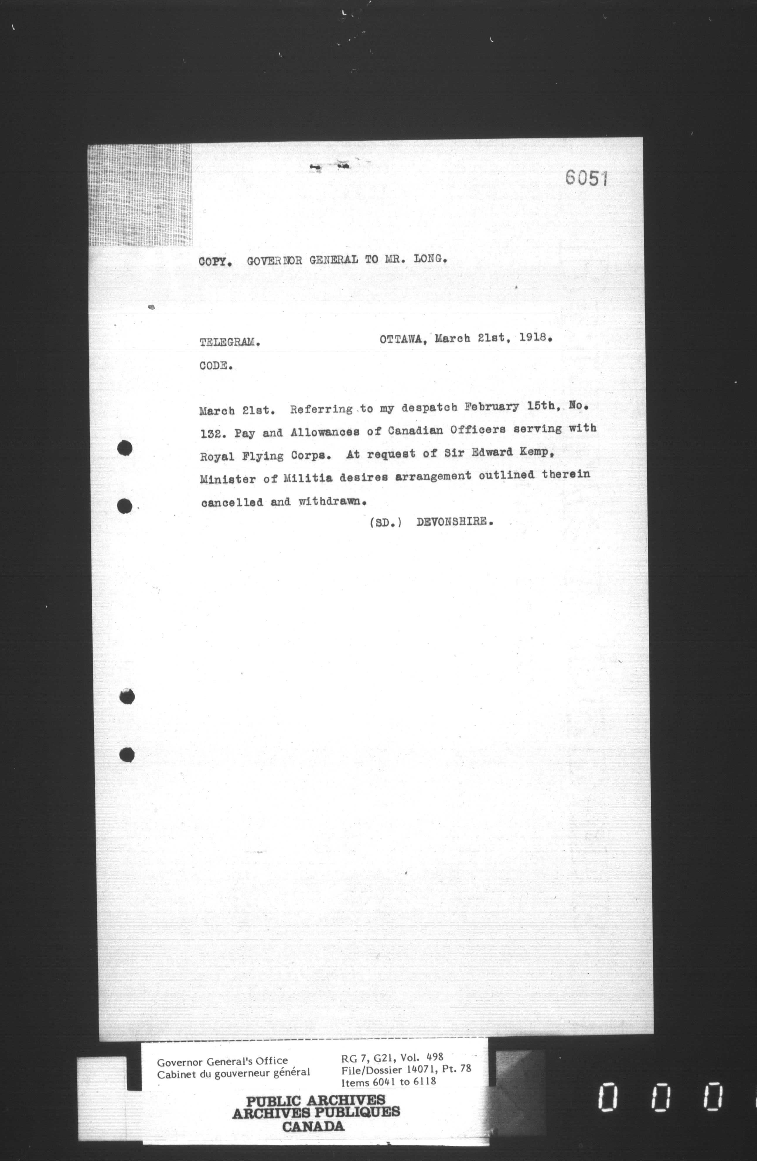 [Governor General] numbered files - 2321