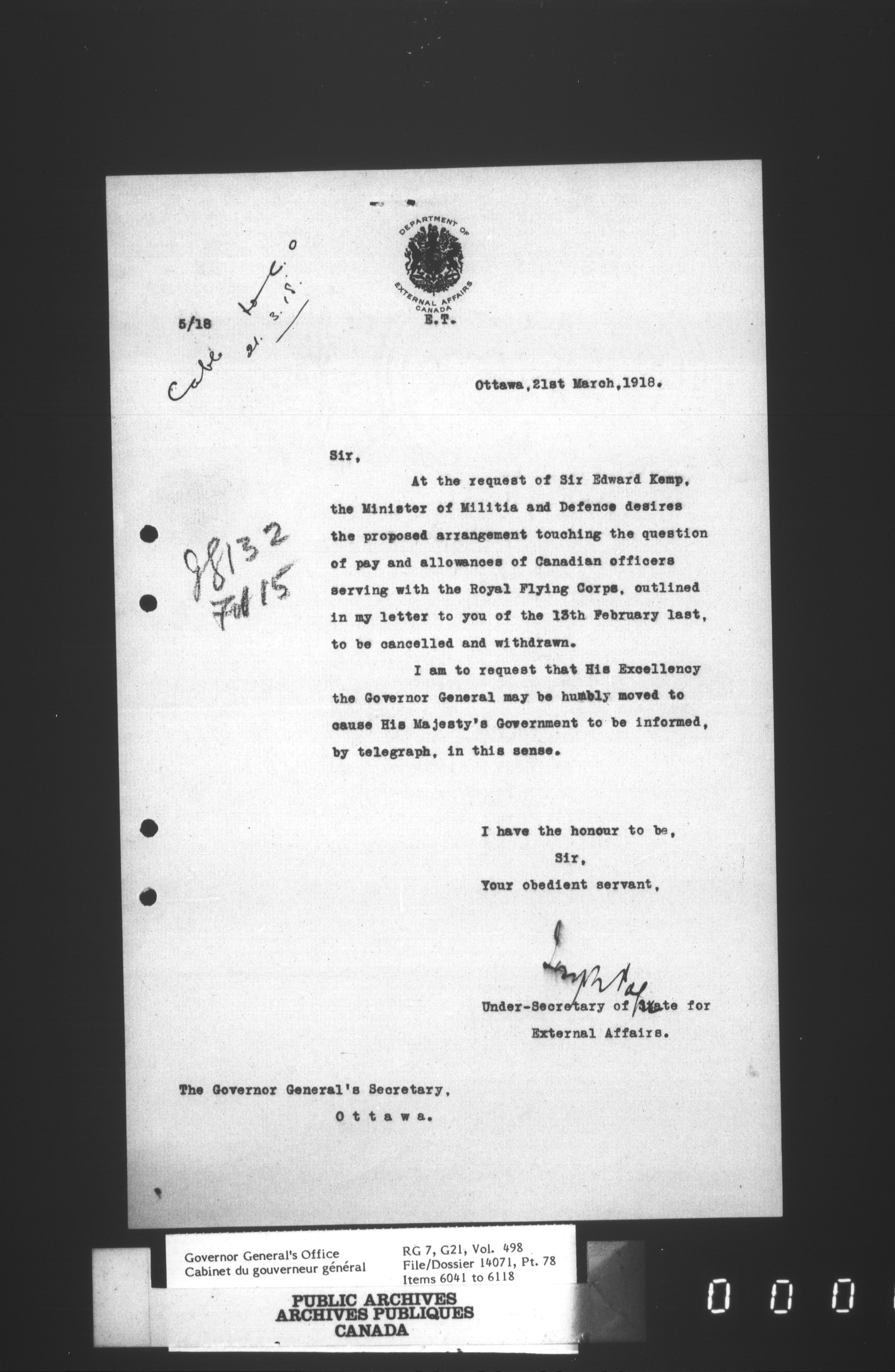 [Governor General] numbered files - 2321