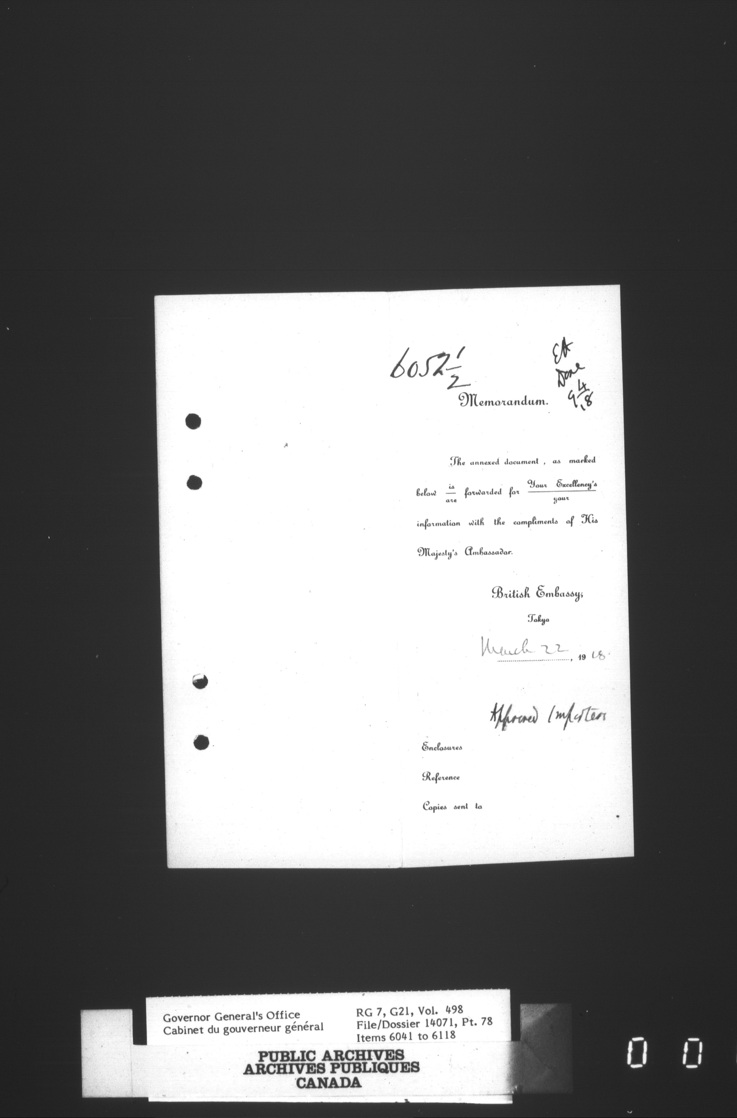[Governor General] numbered files - 2321