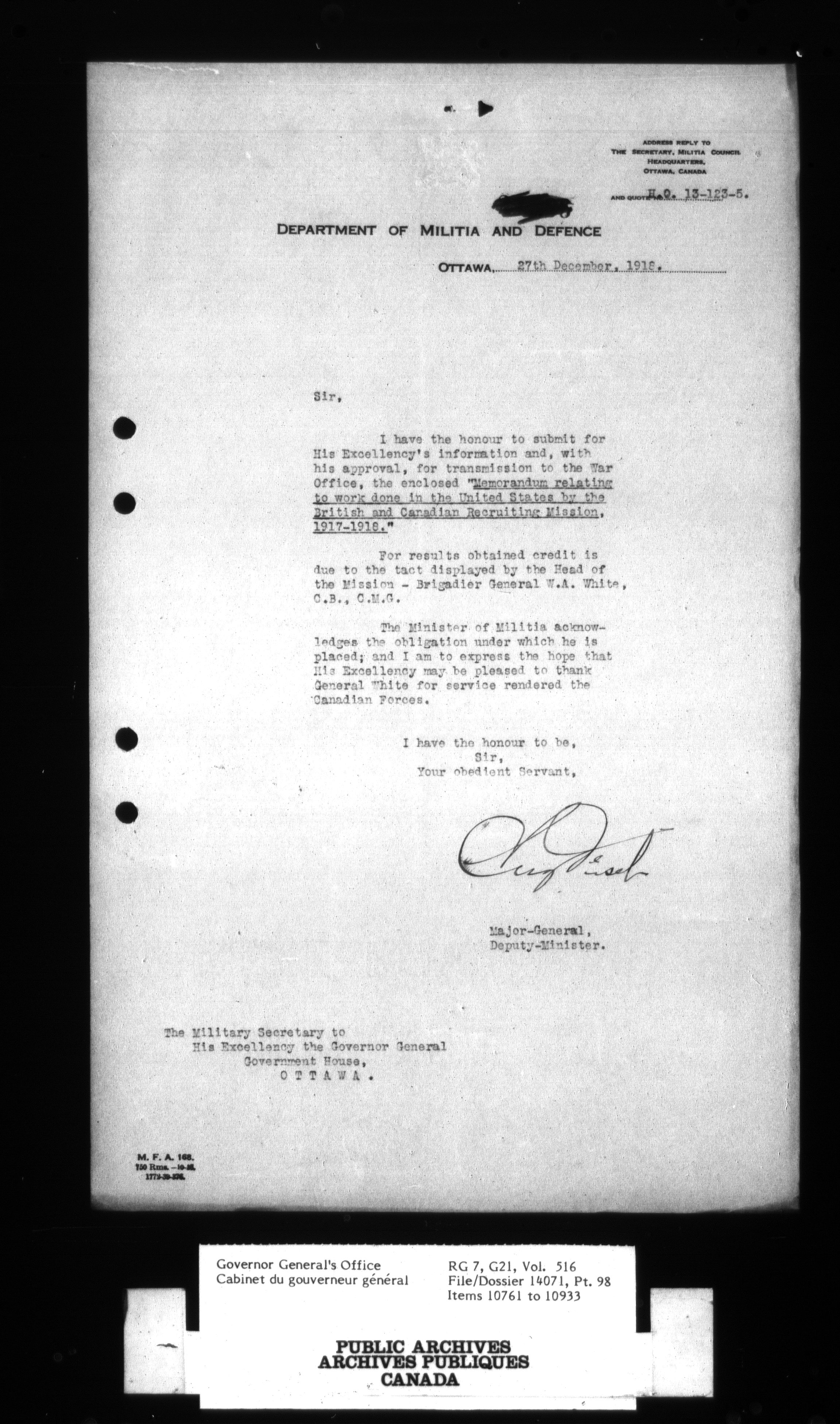 [Governor General] numbered files - 2327