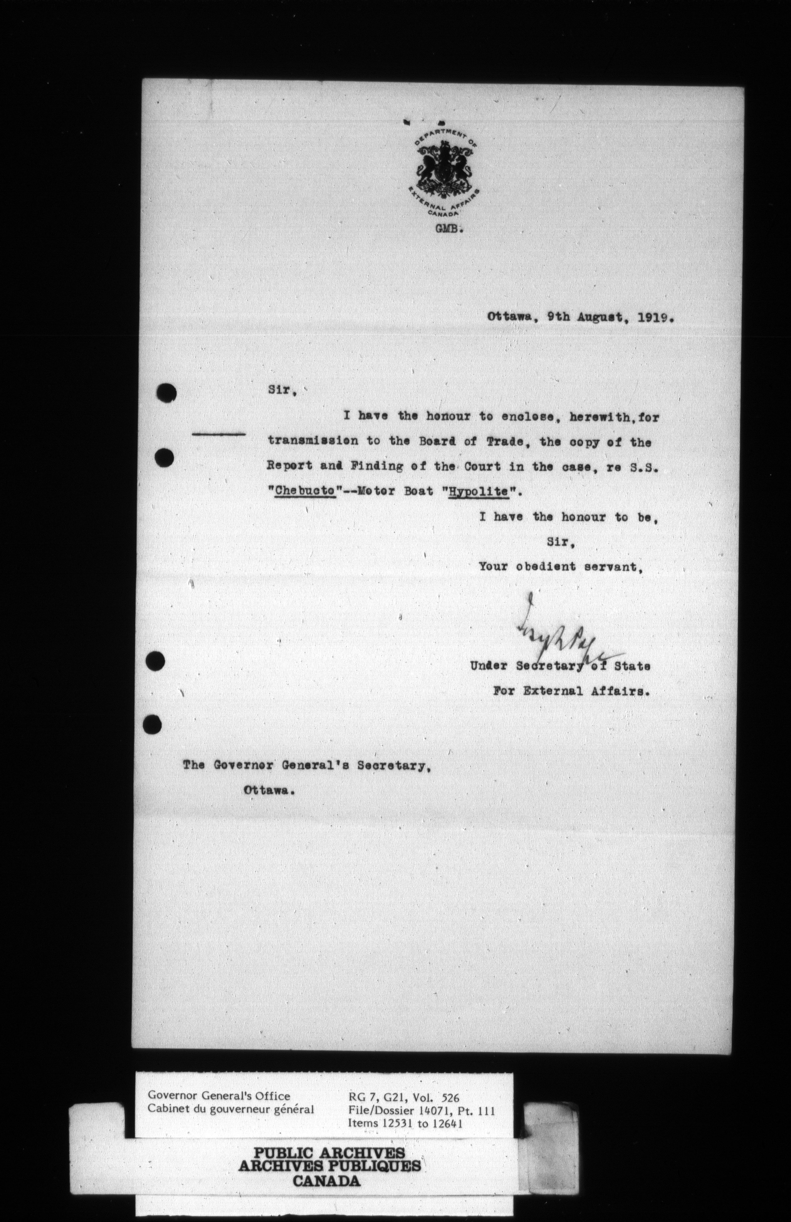 [Governor General] numbered files - 2329