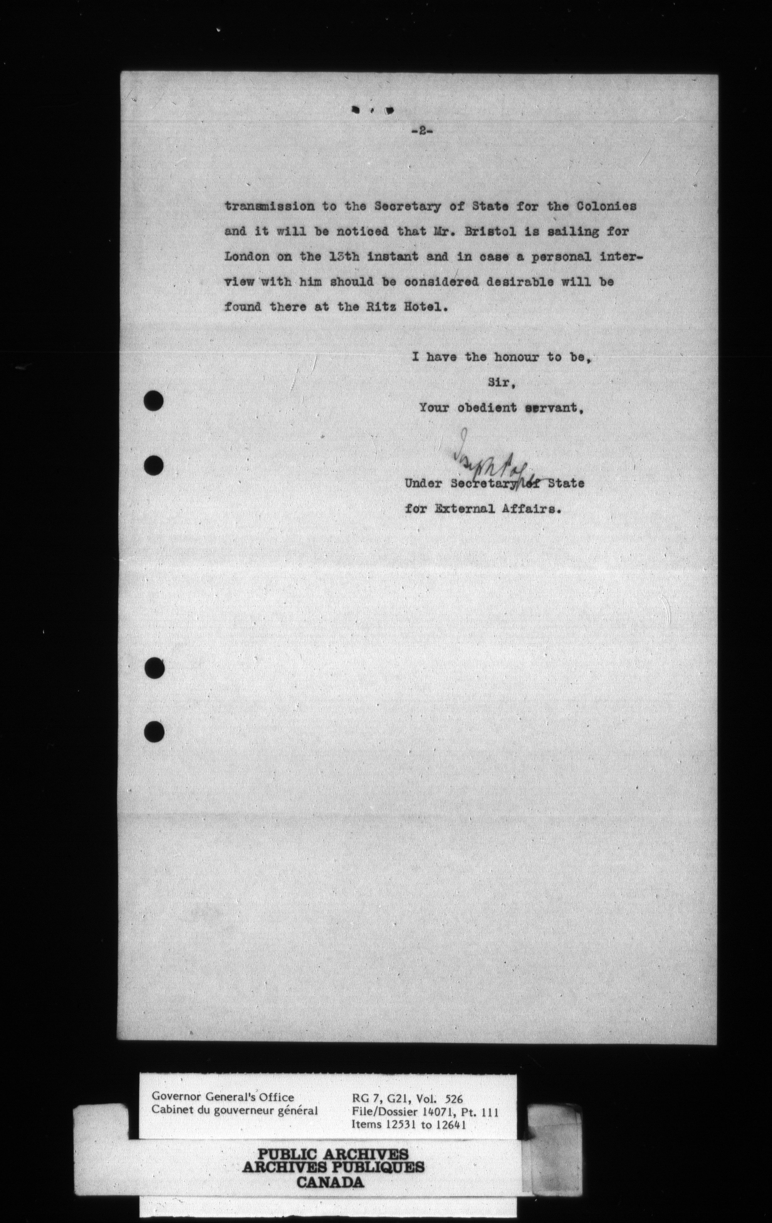 [Governor General] numbered files - 2329
