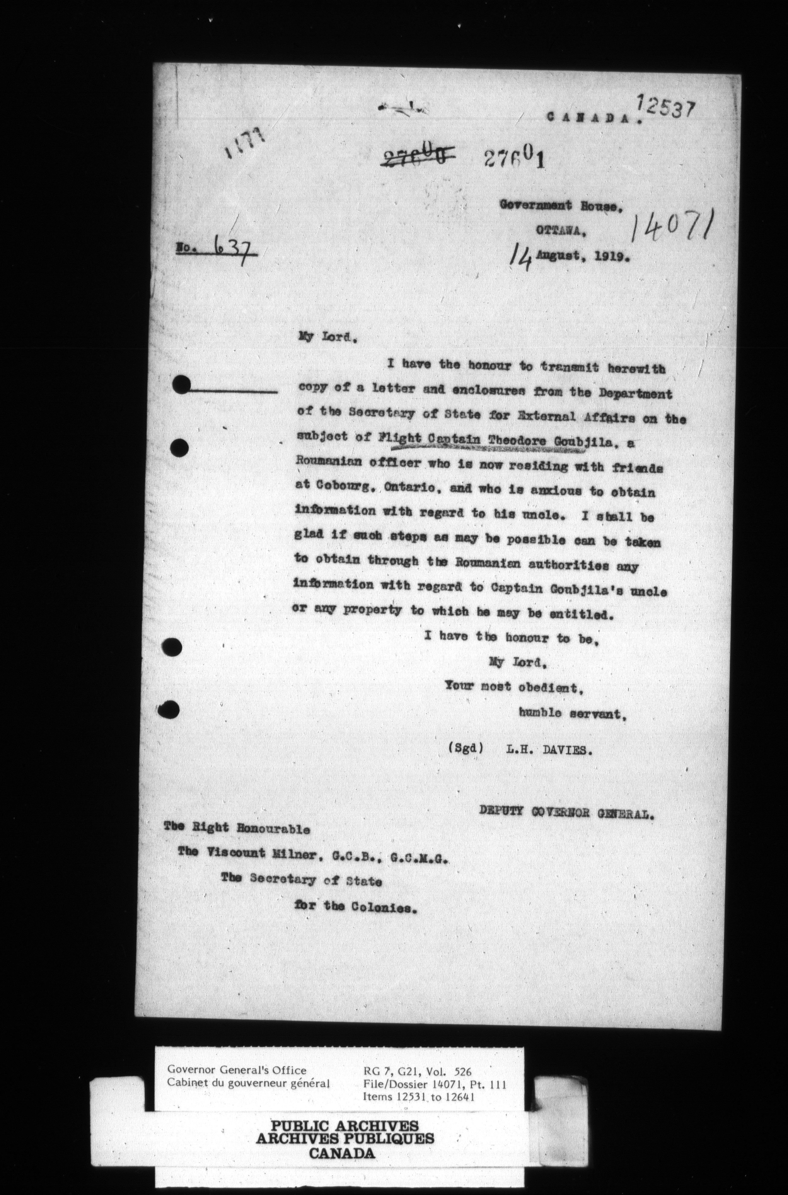 [Governor General] numbered files - 2329