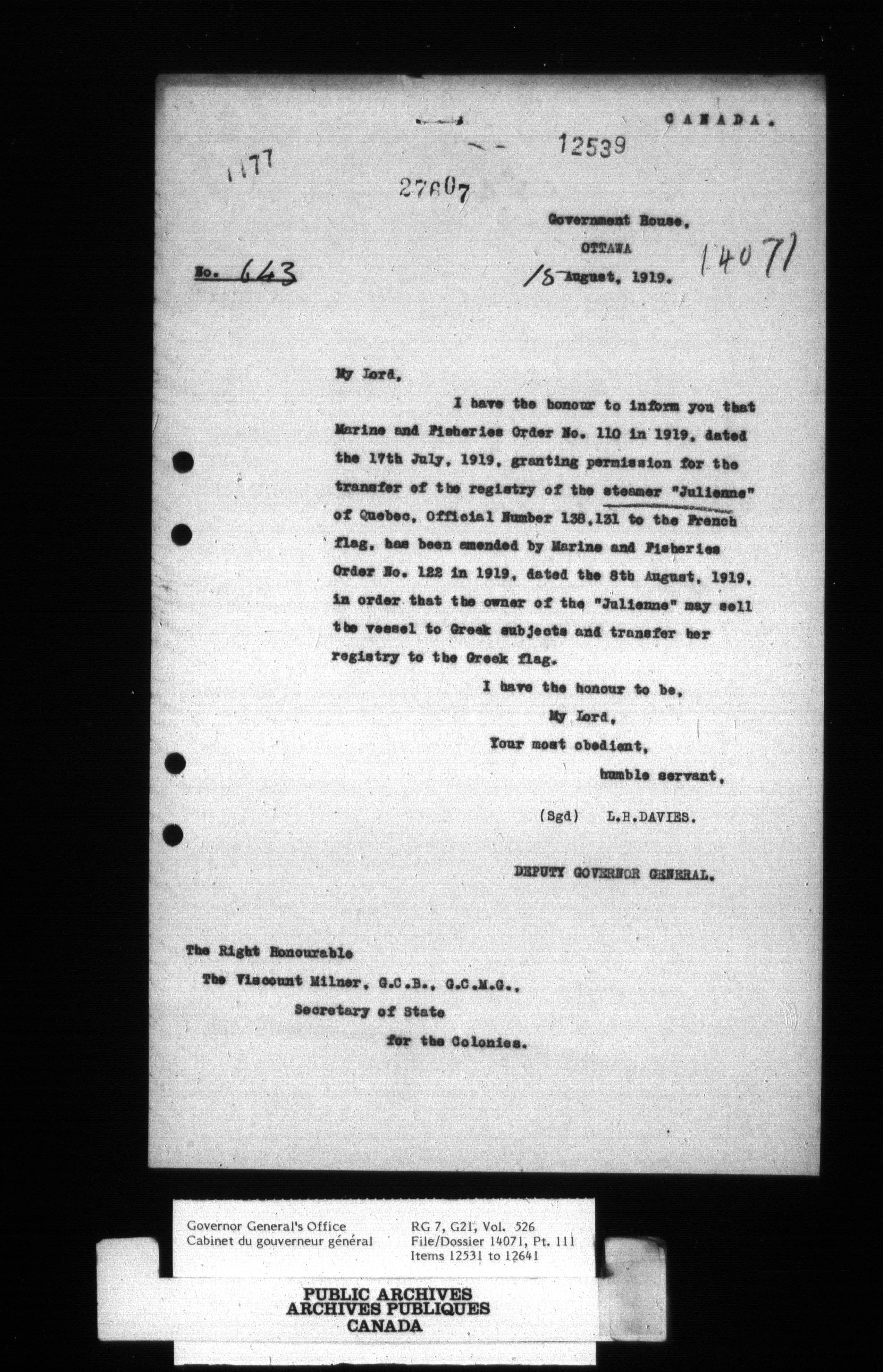 [Governor General] numbered files - 2329