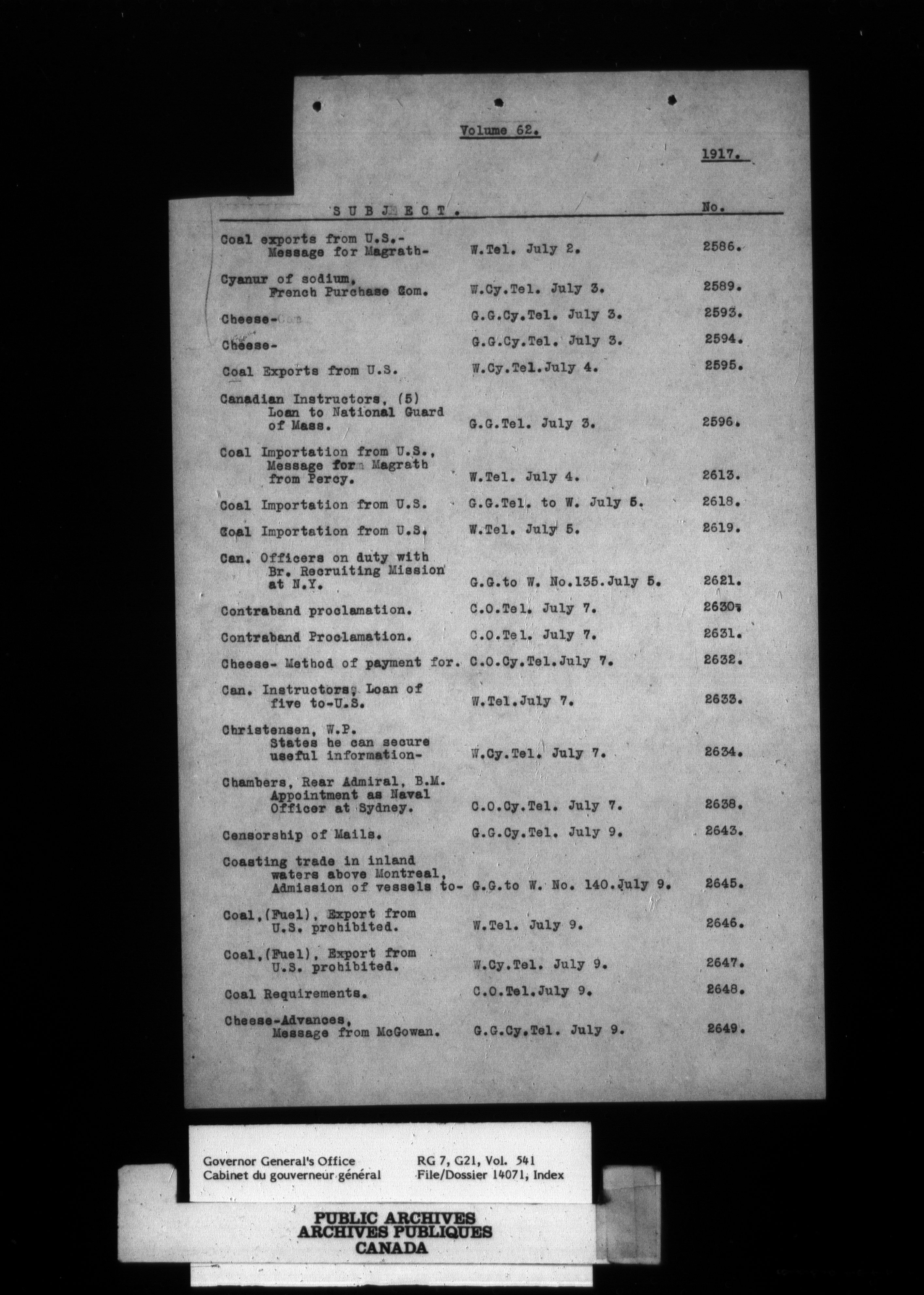 [Governor General] numbered files - 2335