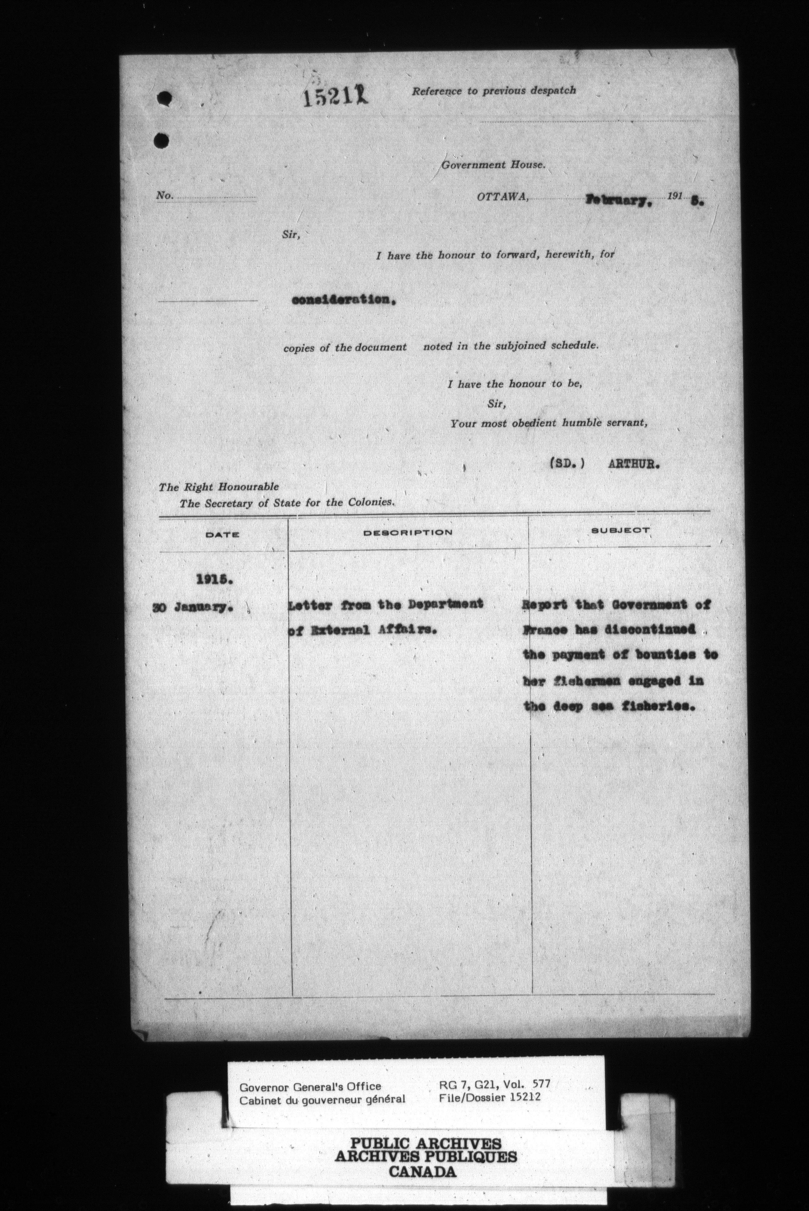 [Governor General] numbered files - 2341