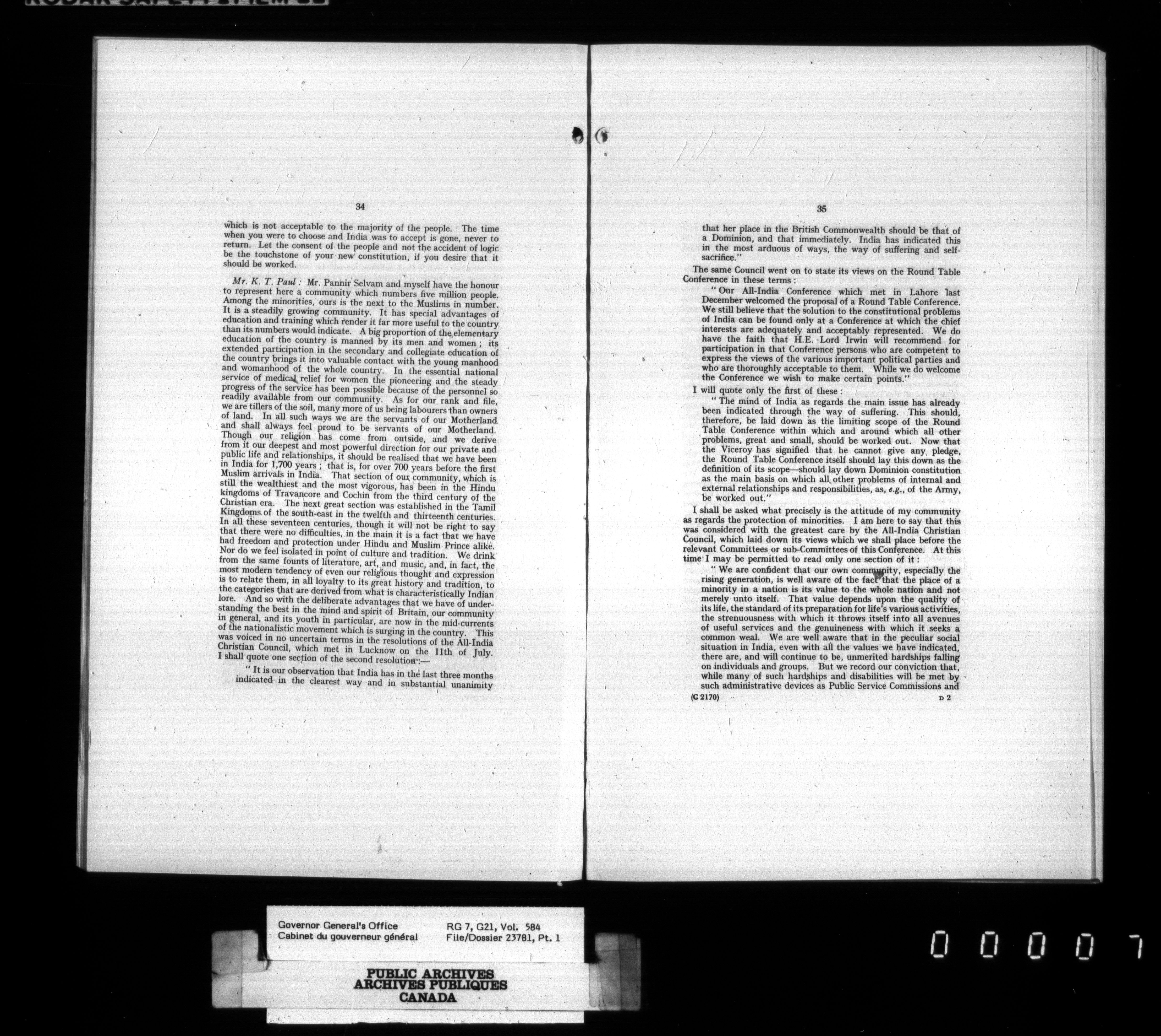 [Governor General] numbered files - 2345