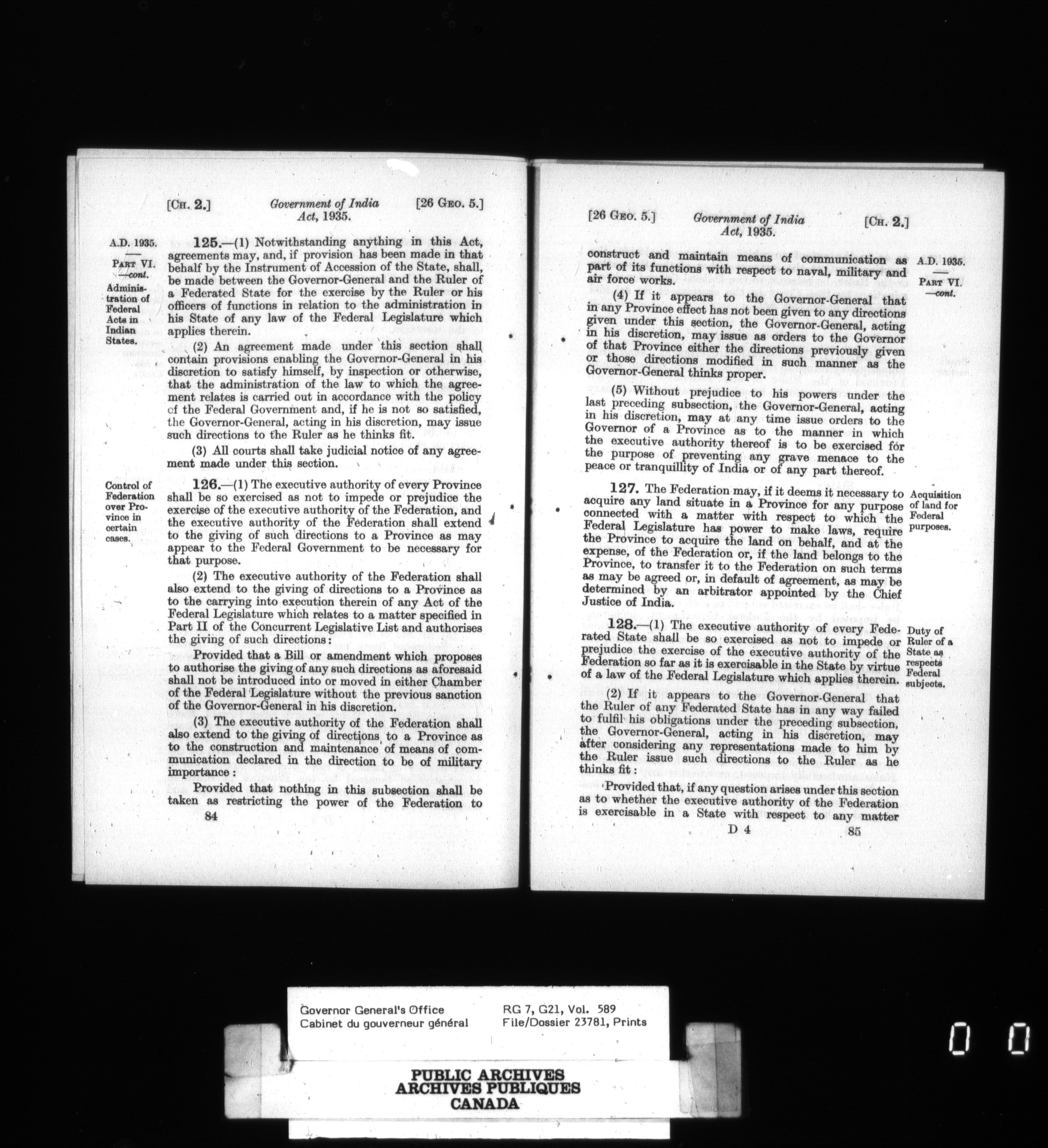 [Governor General] numbered files - 2351