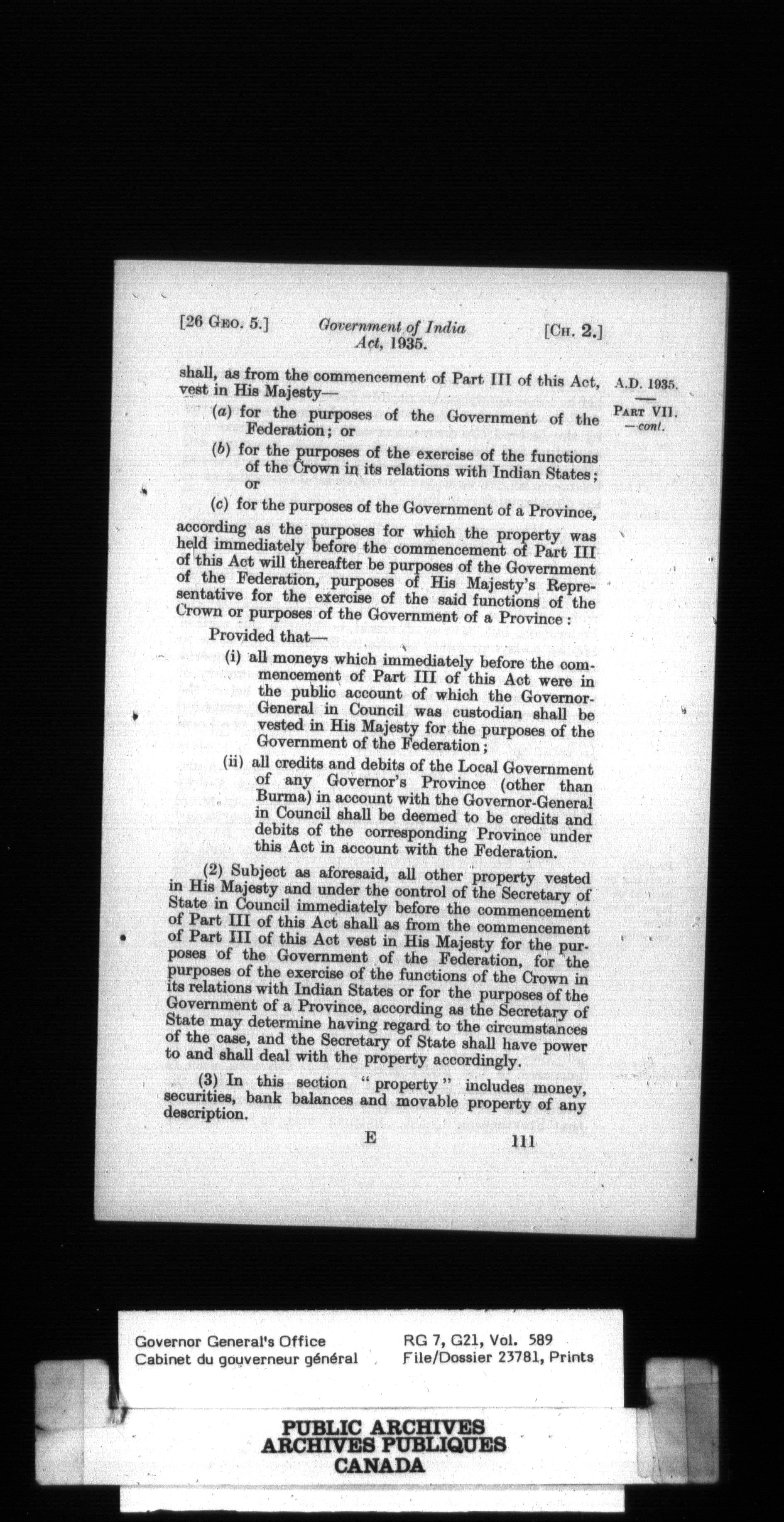 [Governor General] numbered files - 2351