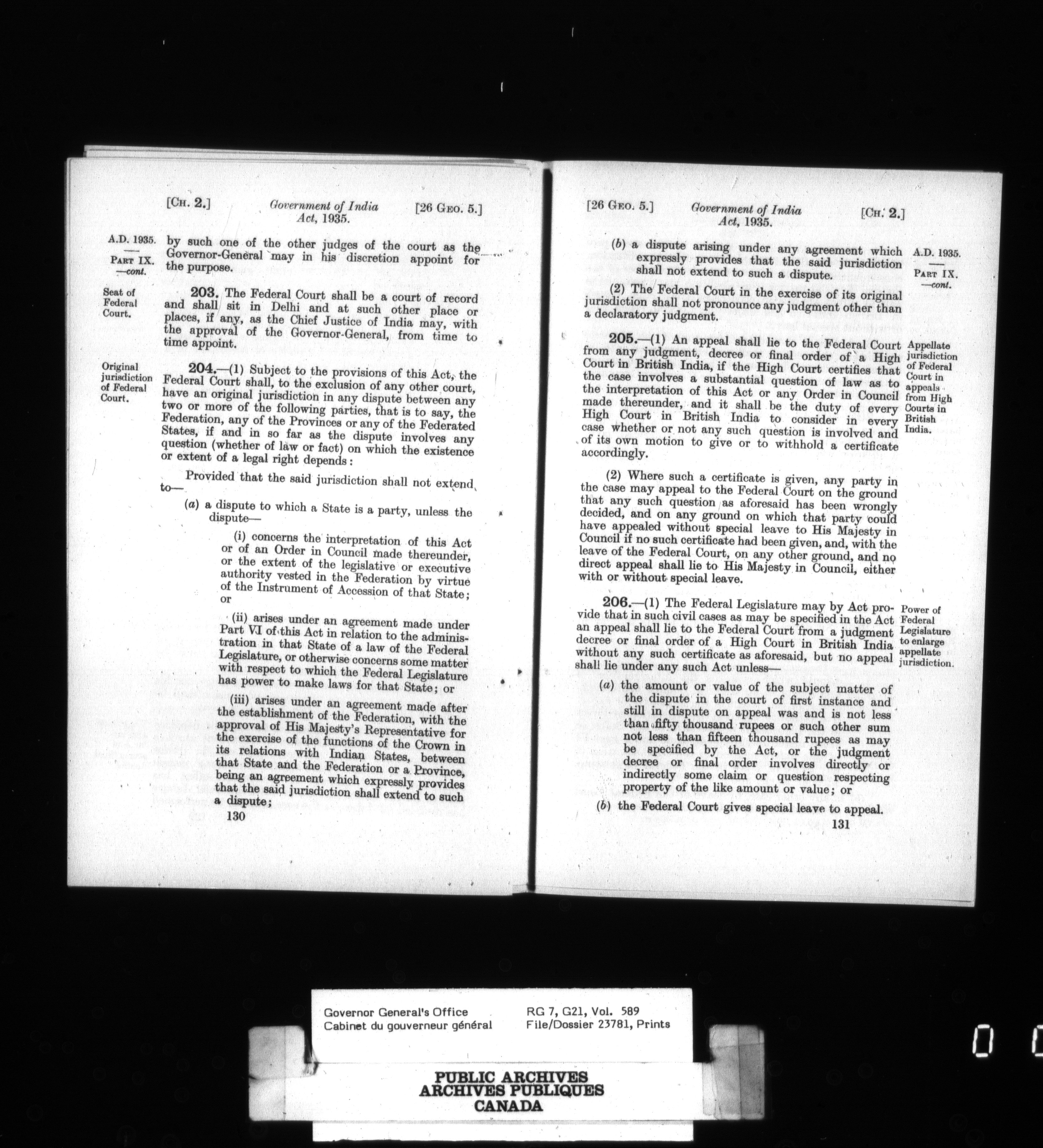 [Governor General] numbered files - 2351