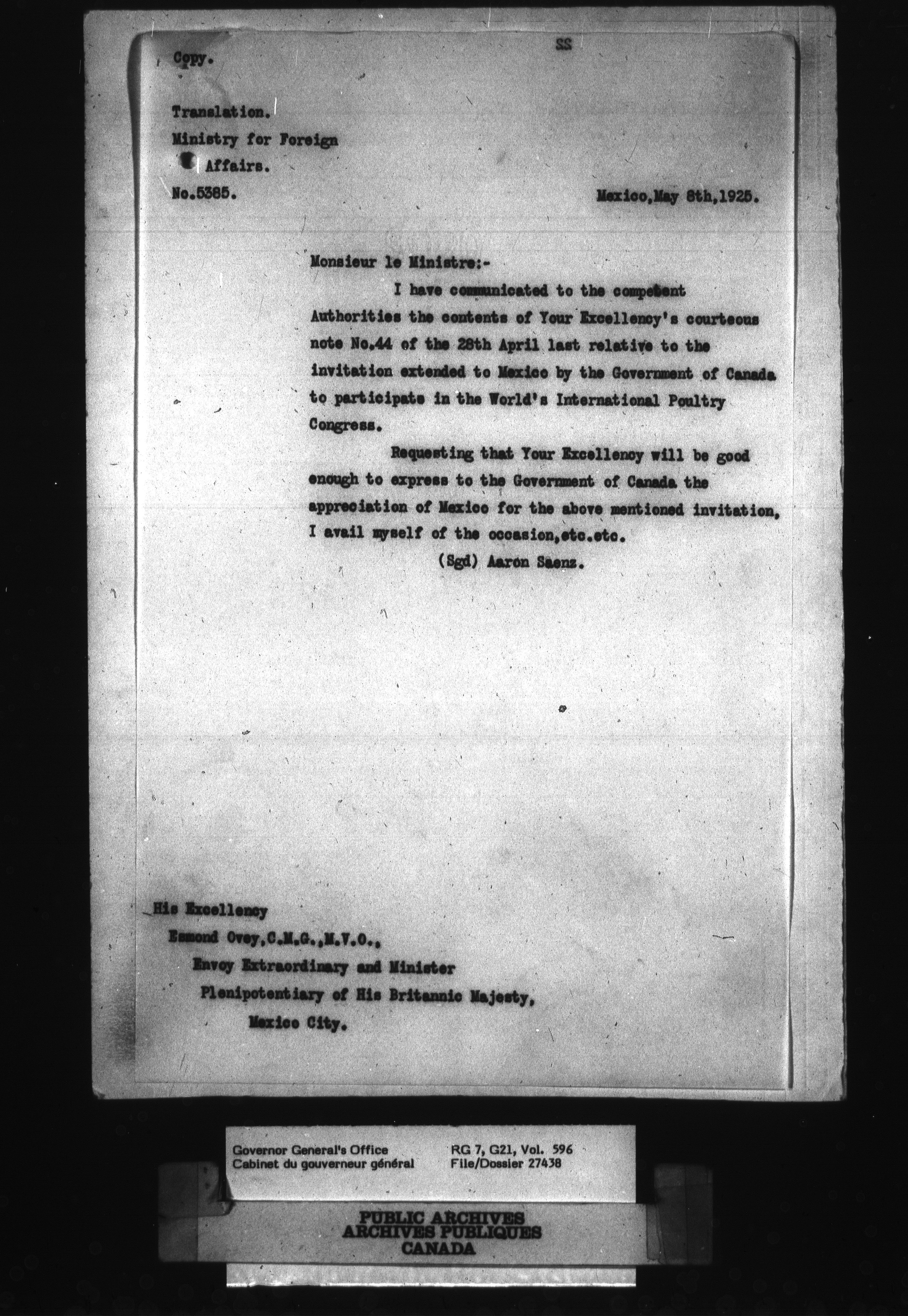 [Governor General] numbered files - 2354