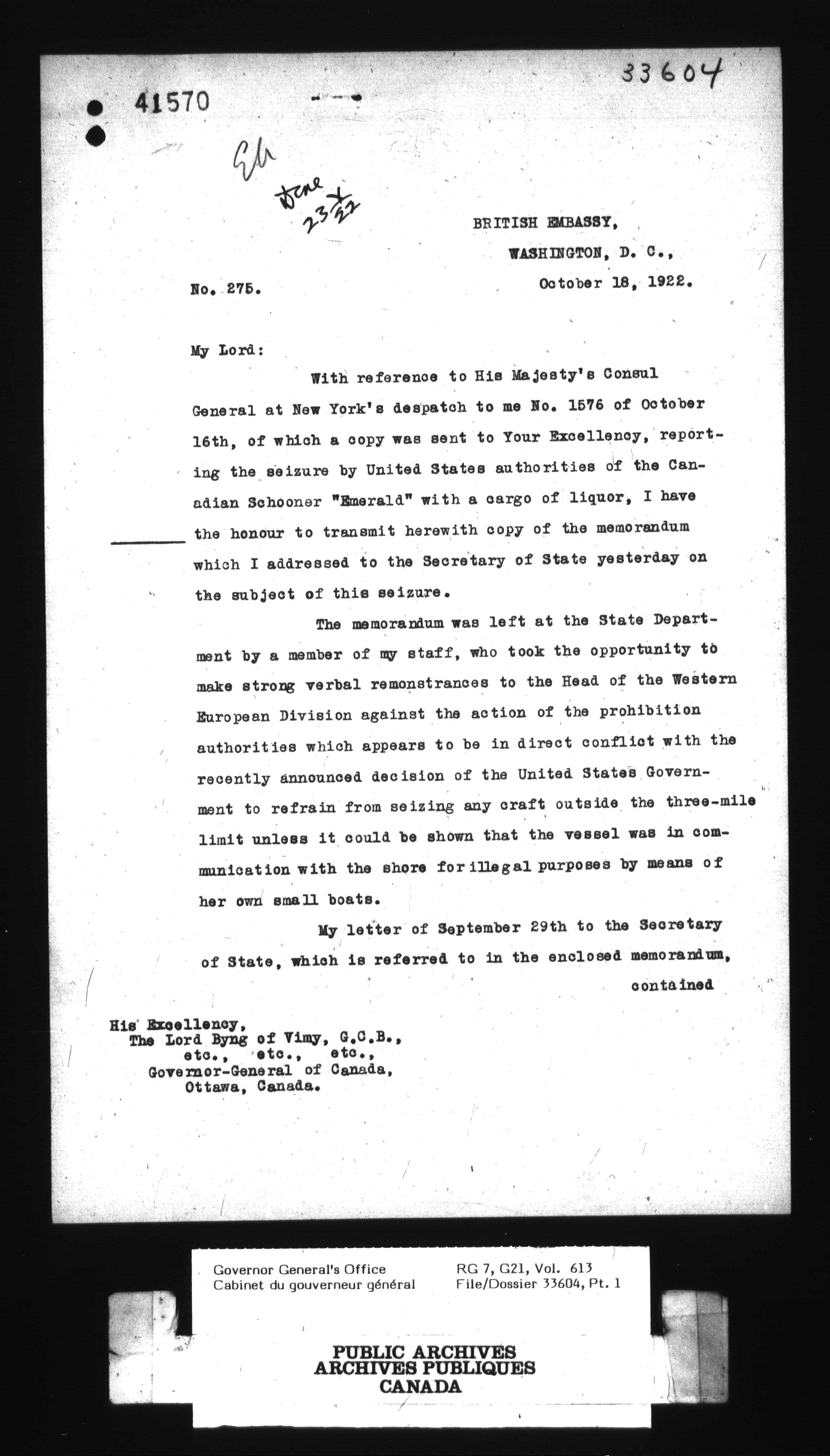 [Governor General] numbered files - 2361