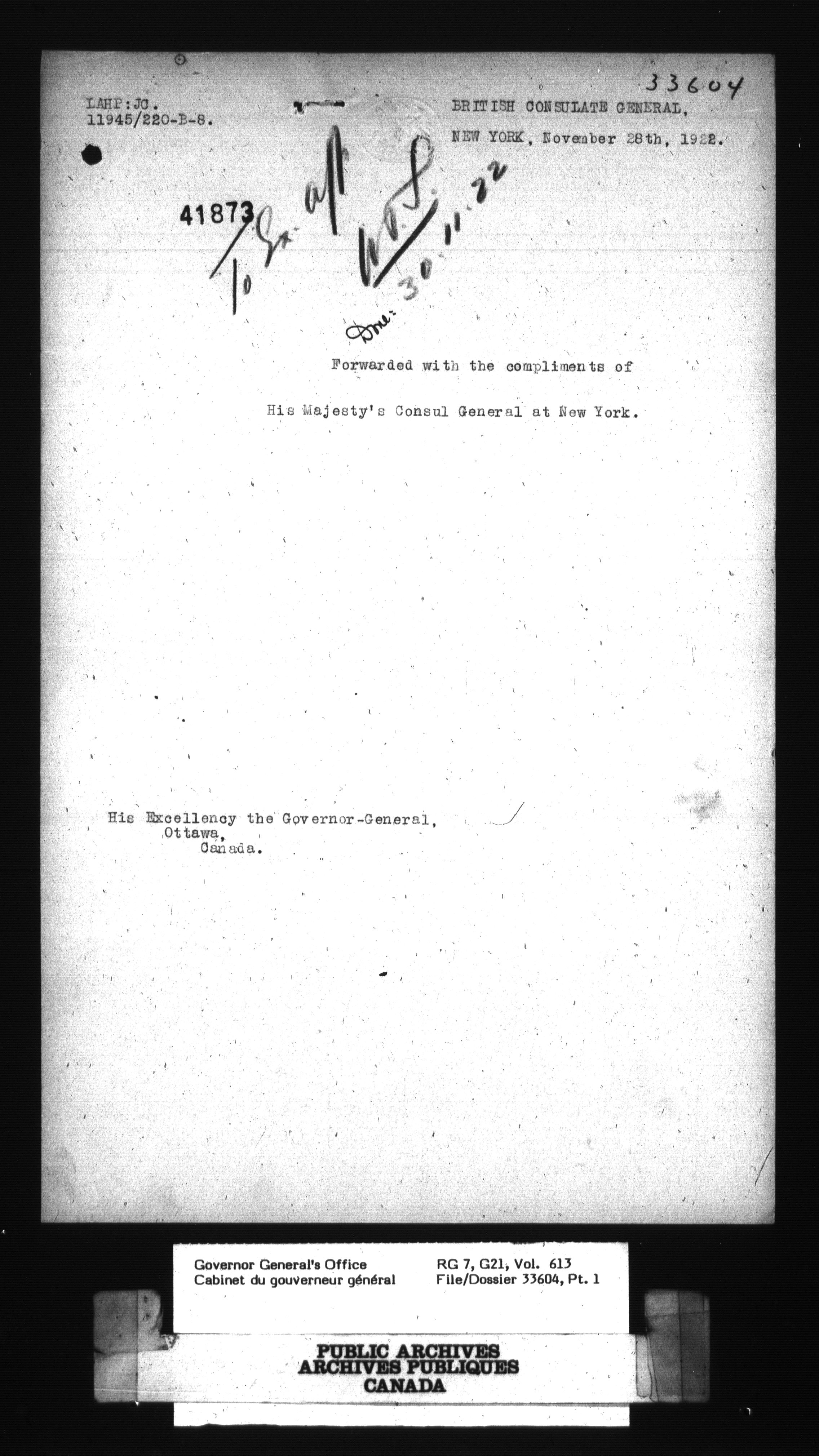 [Governor General] numbered files - 2361