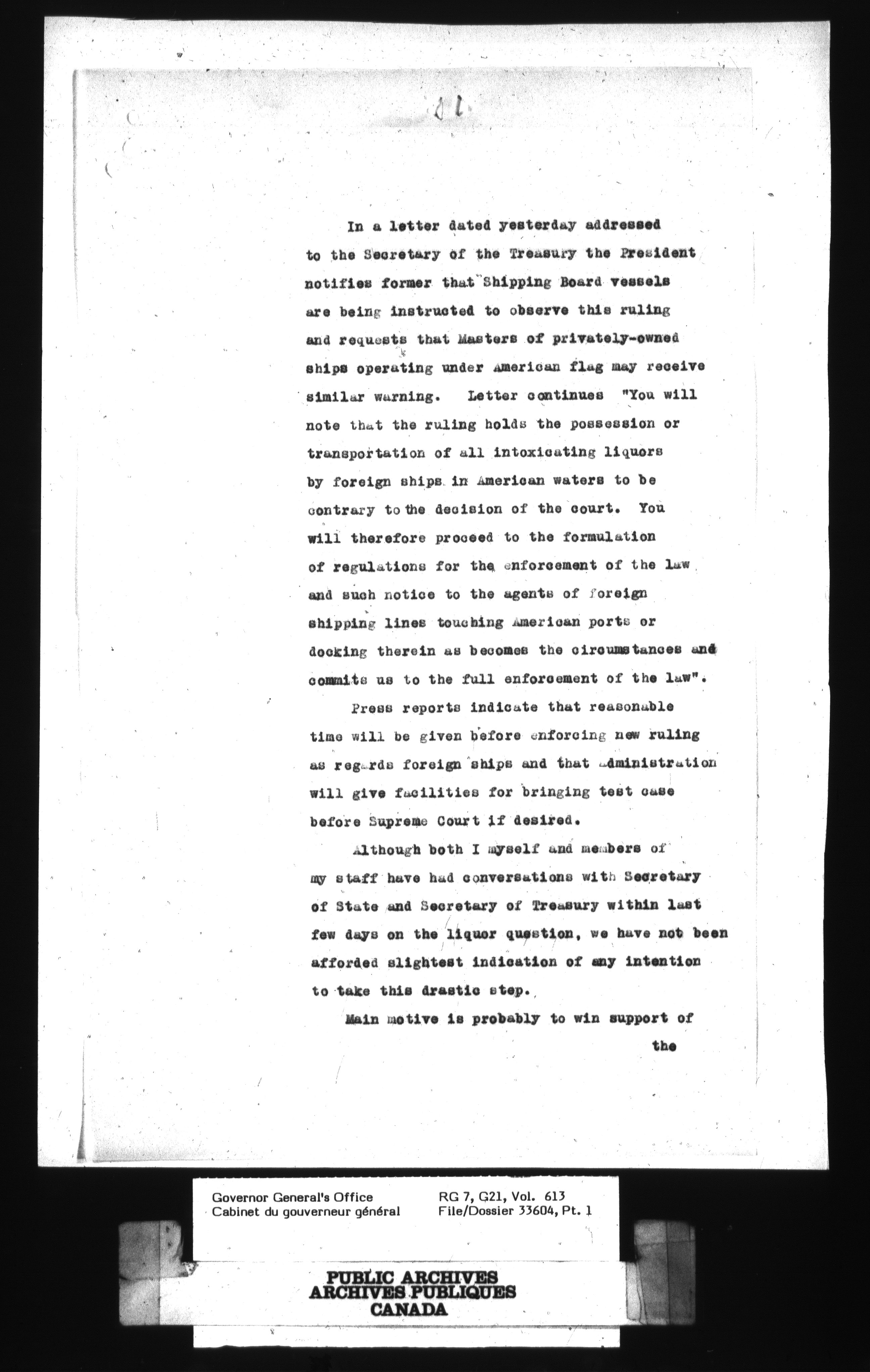 [Governor General] numbered files - 2361