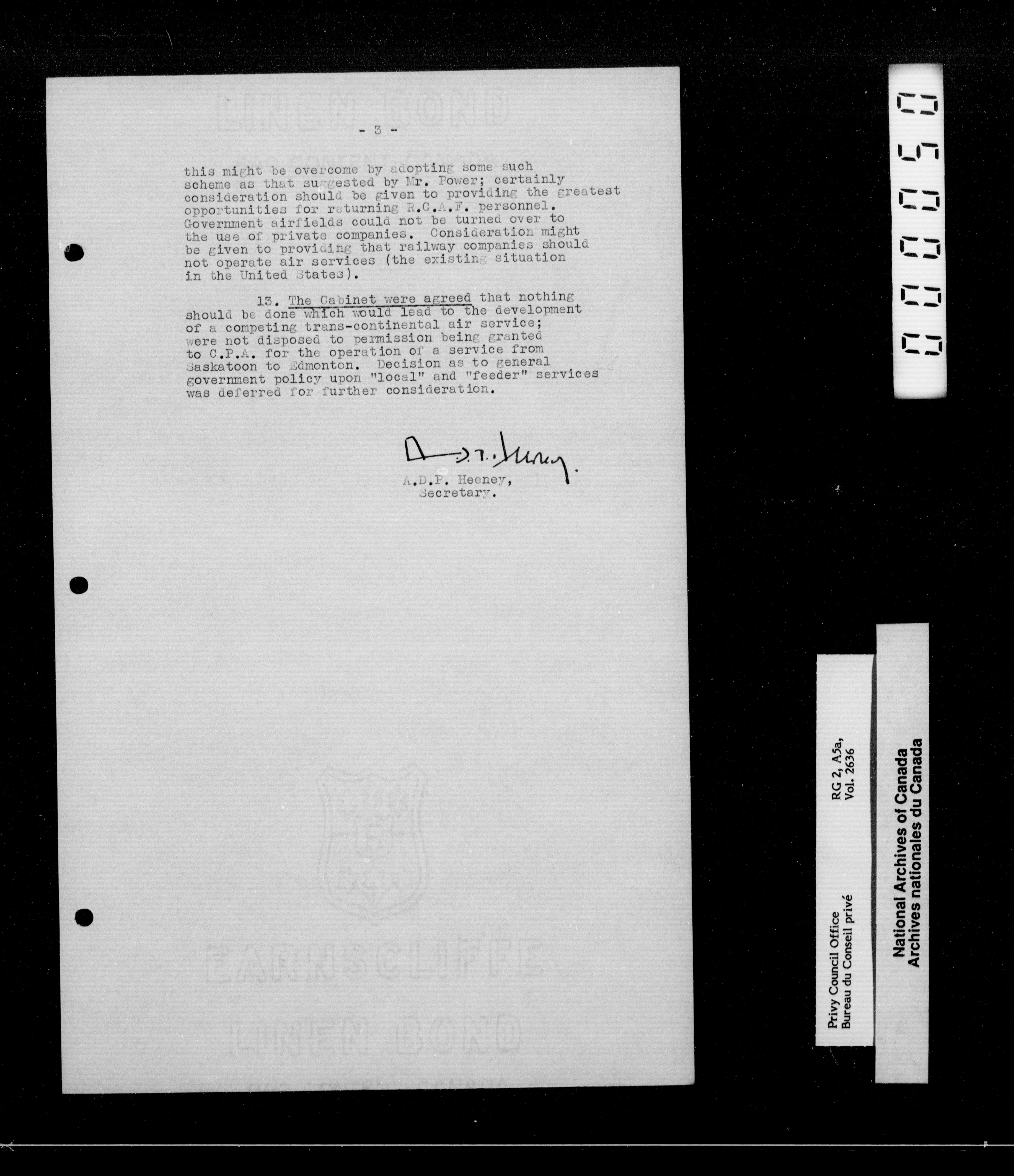 Privy Council Office : Cabinet conclusions - 2364