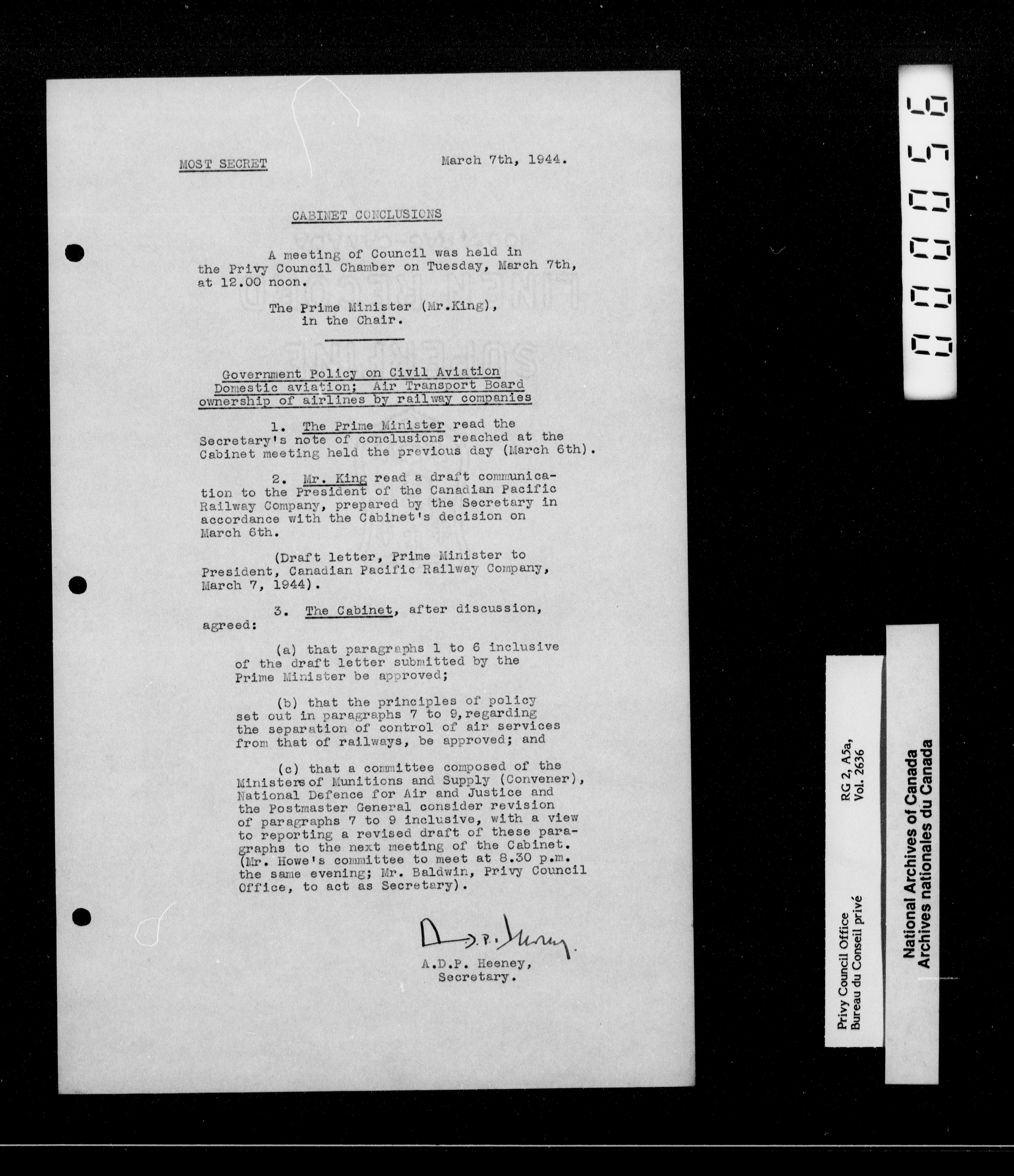 Privy Council Office : Cabinet conclusions - 2364