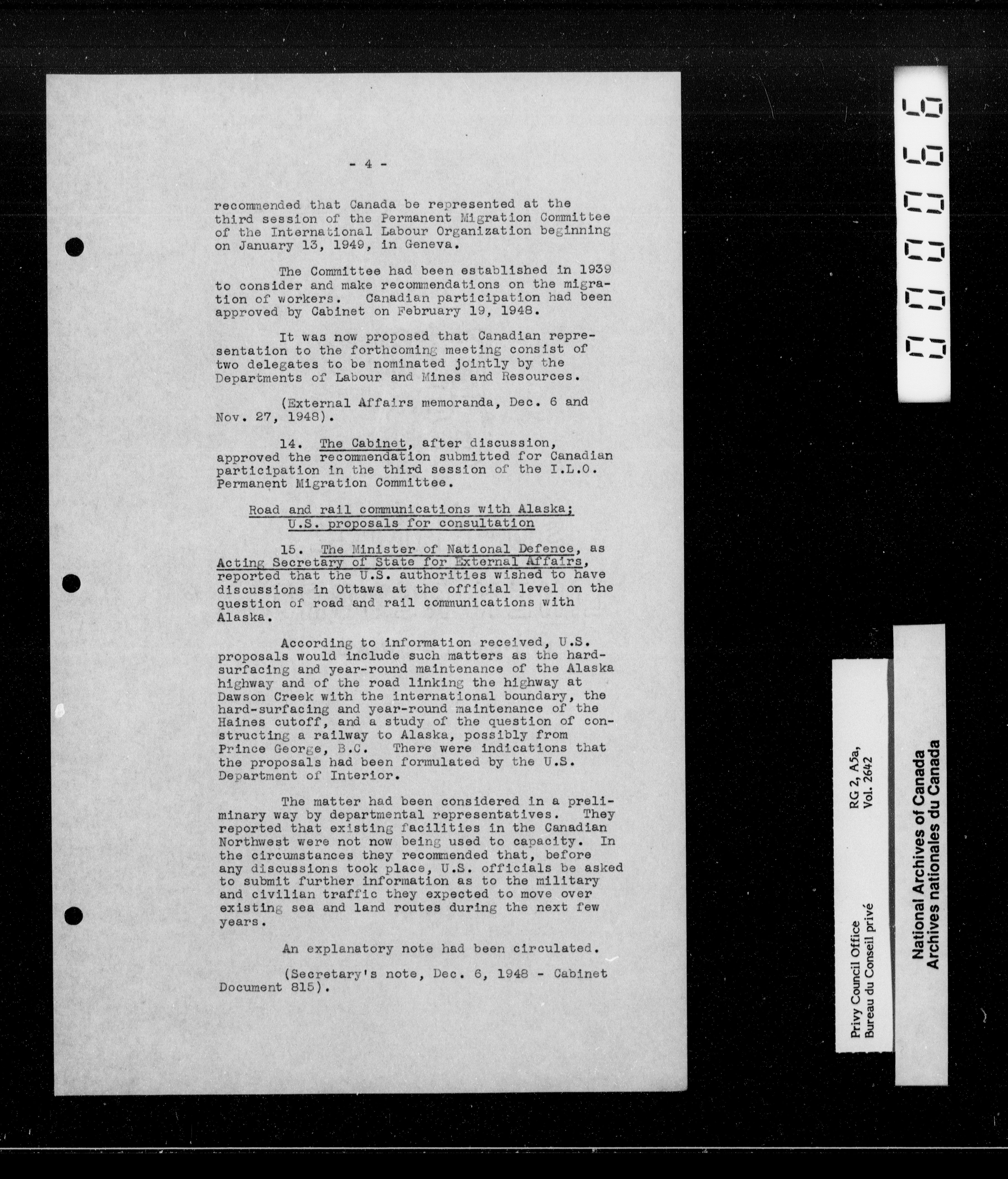 Privy Council Office : Cabinet conclusions - 2366