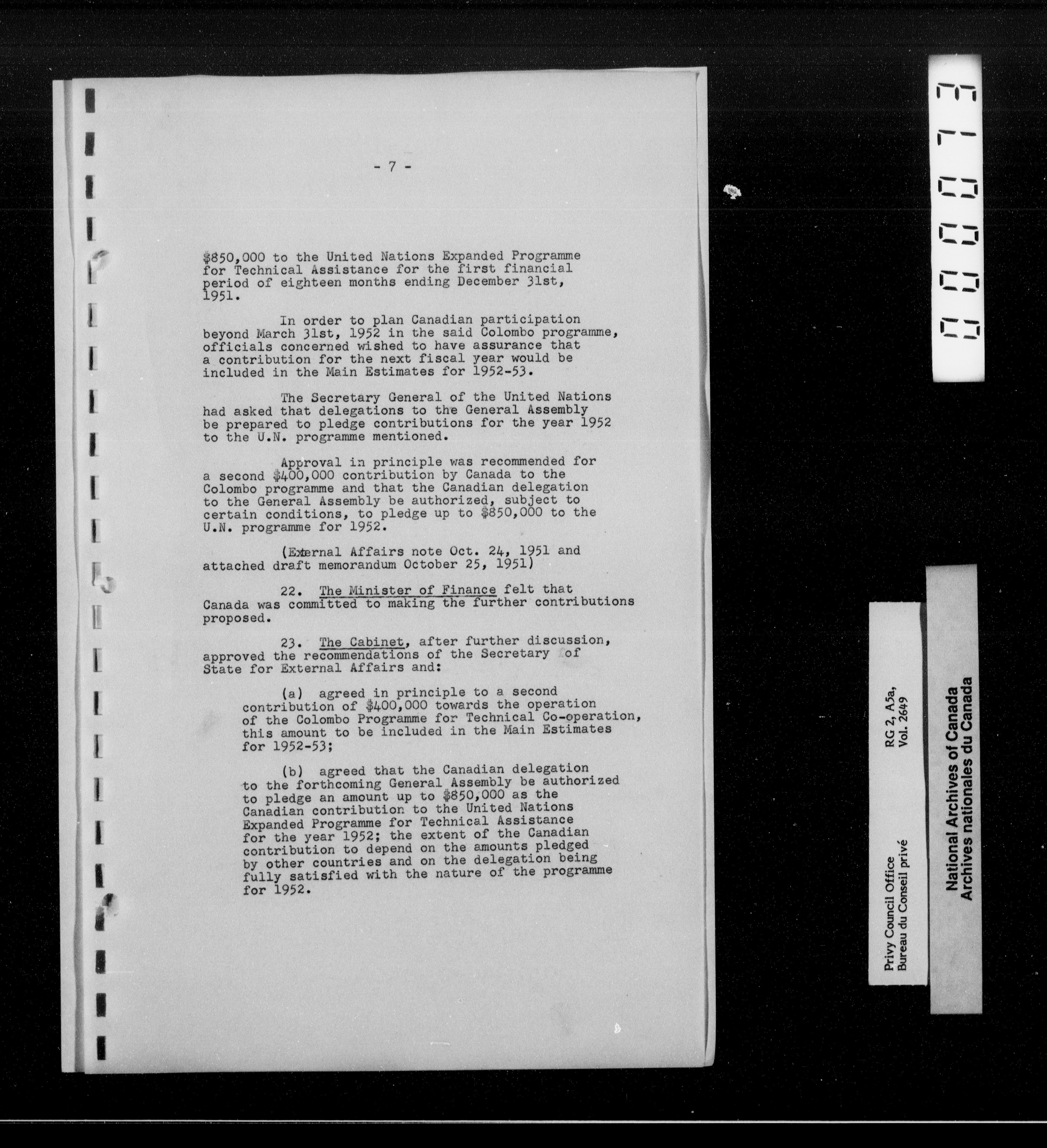 Privy Council Office : Cabinet conclusions - 2368
