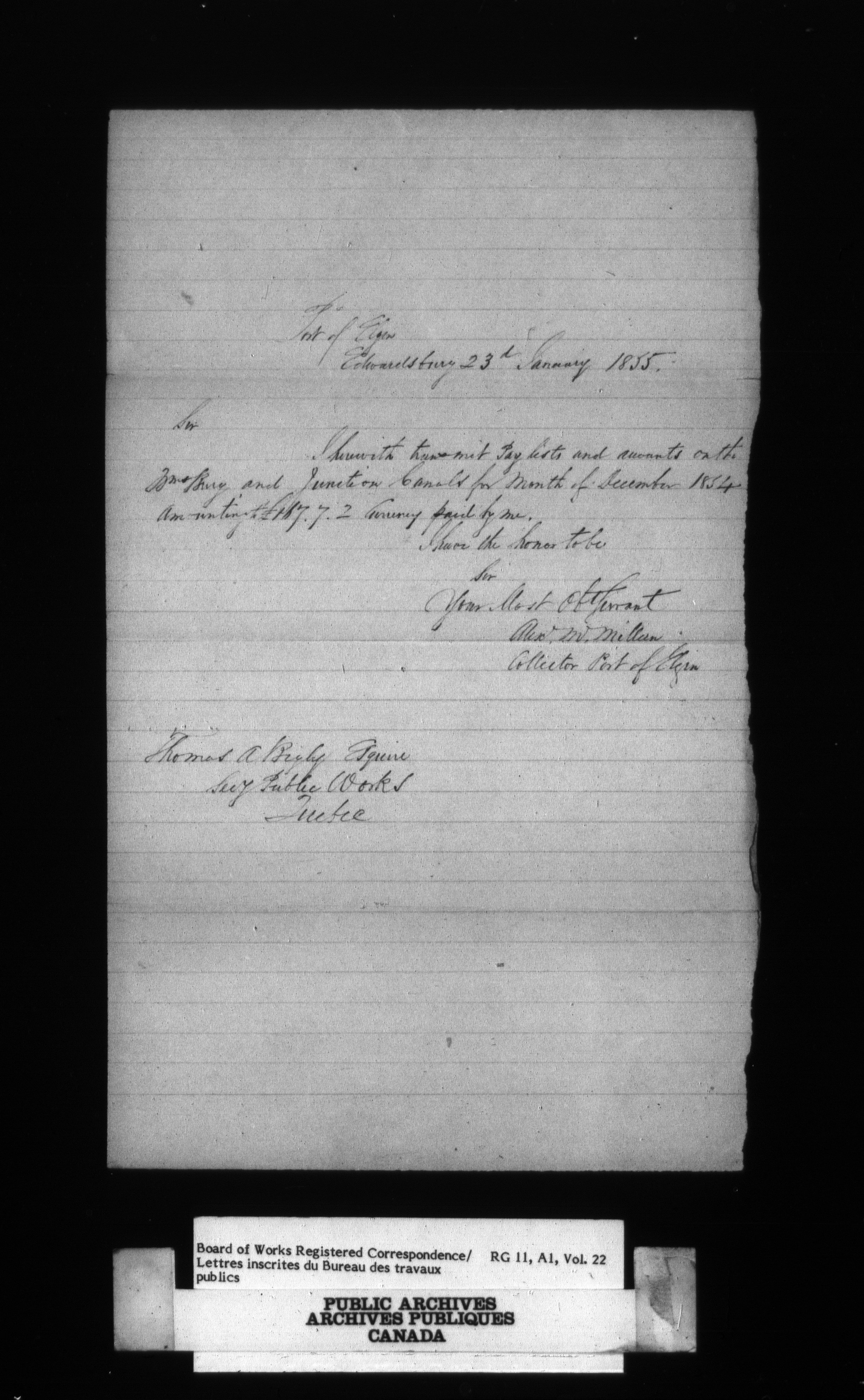 Department of Public Works, Board of Works : Official registered correspondence, 1842-1860 - 2371