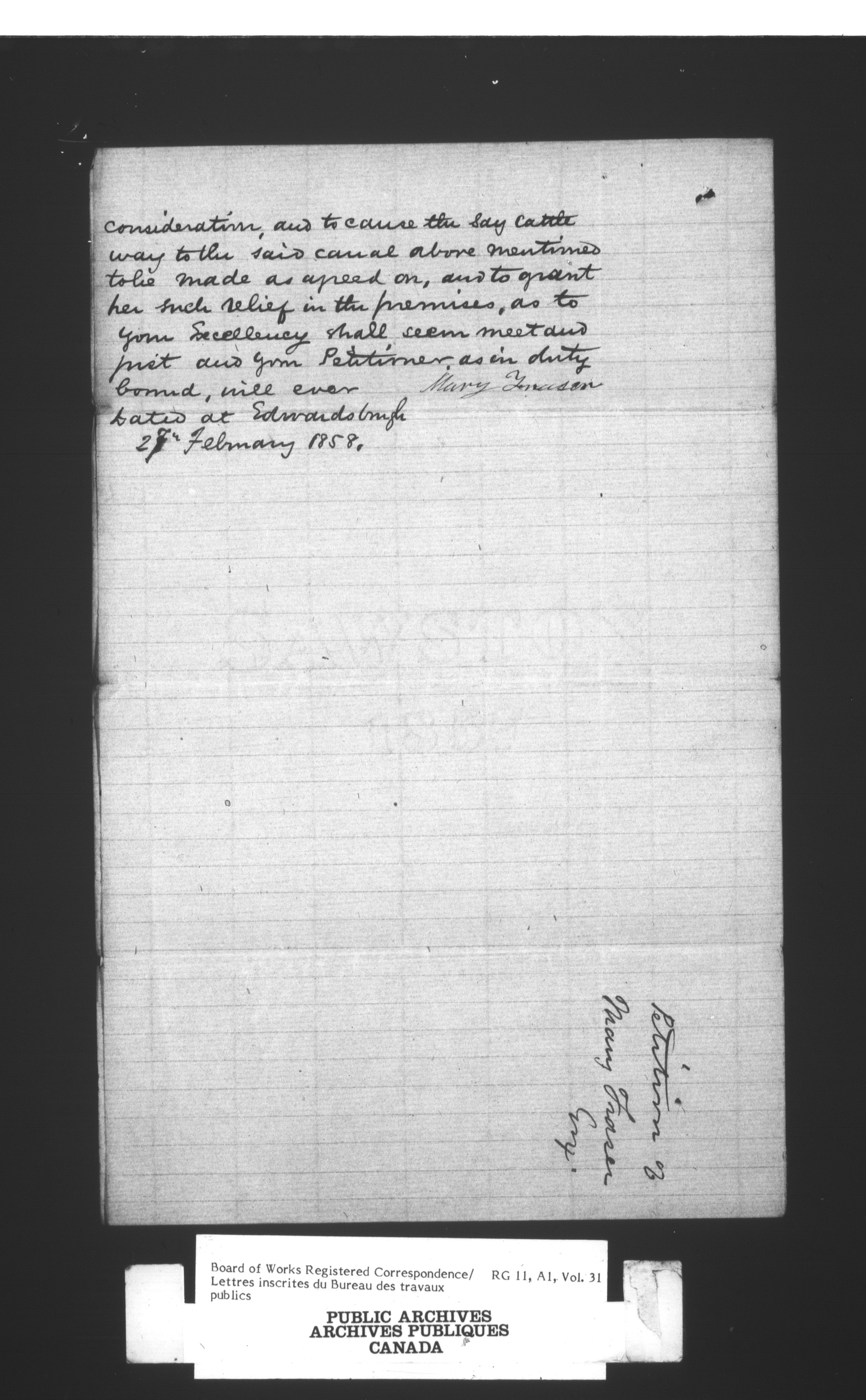 Department of Public Works, Board of Works records, official correspondence : Registered correspondence, 1842-1860 : T-2383
