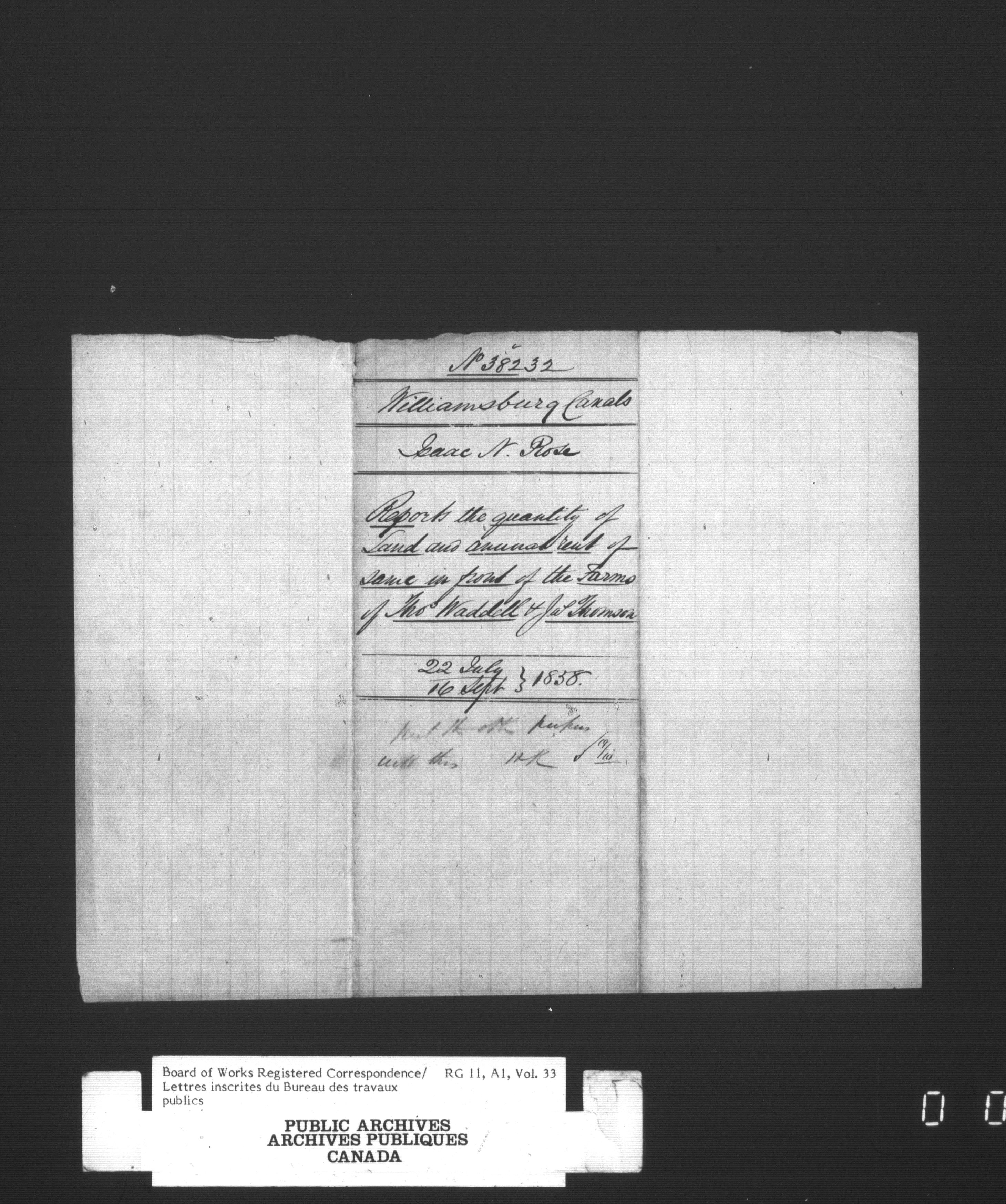 Department of Public Works, Board of Works records, official correspondence : Registered correspondence, 1842-1860 : T-2385