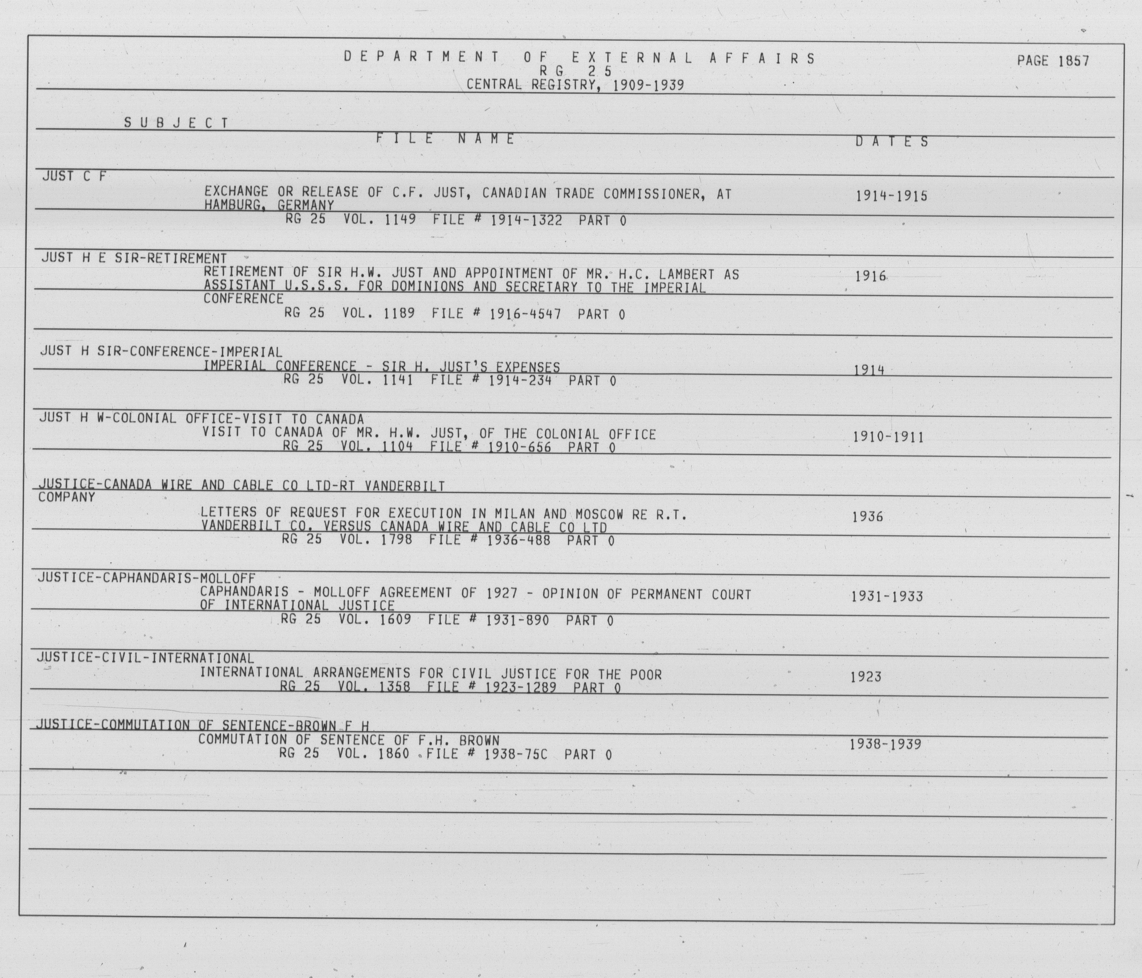 Department of External Affairs: "1939 Series" Central Registry files : Box List, 1909-1939 - 2393