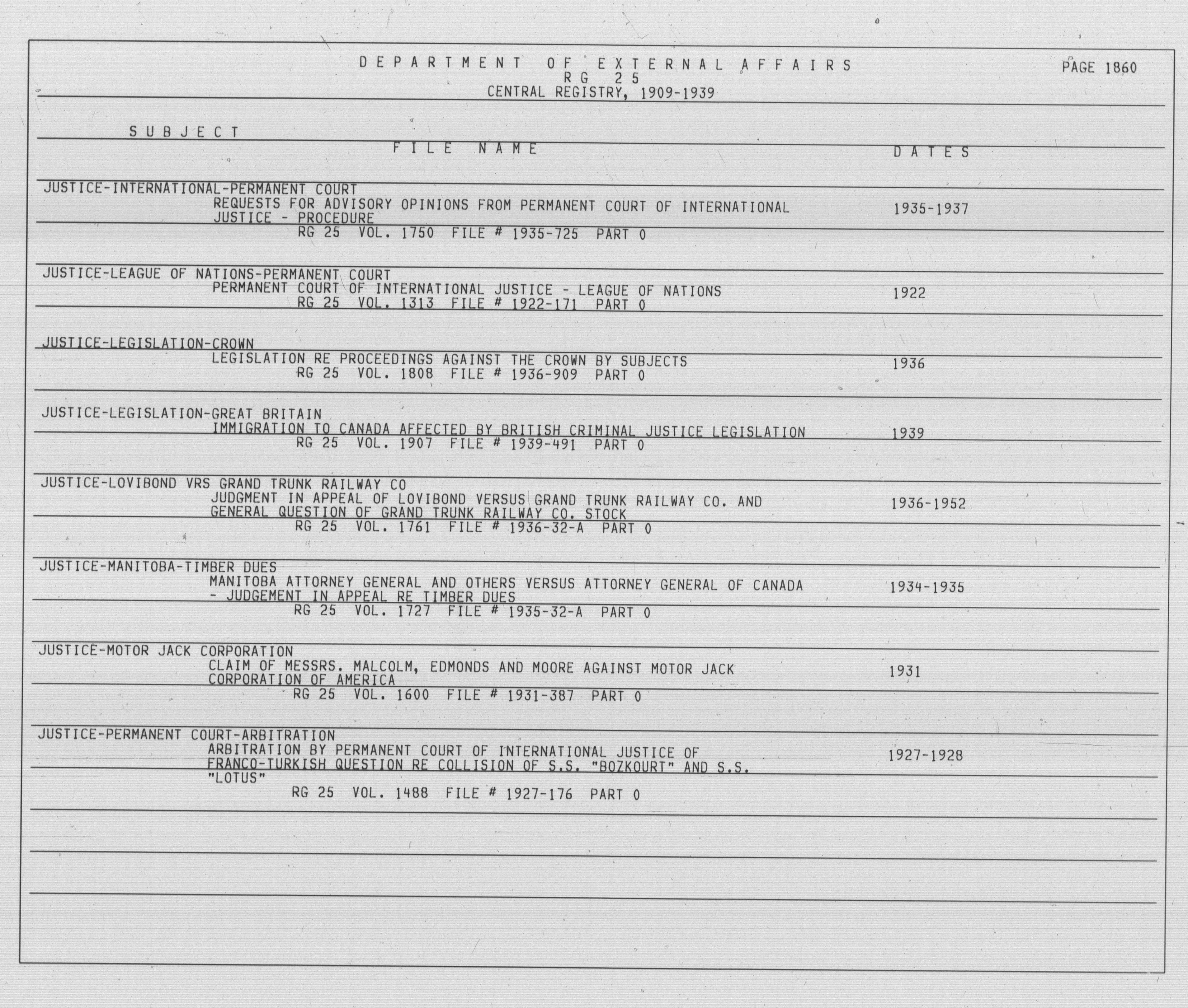 Department of External Affairs: "1939 Series" Central Registry files : Box List, 1909-1939 - 2393