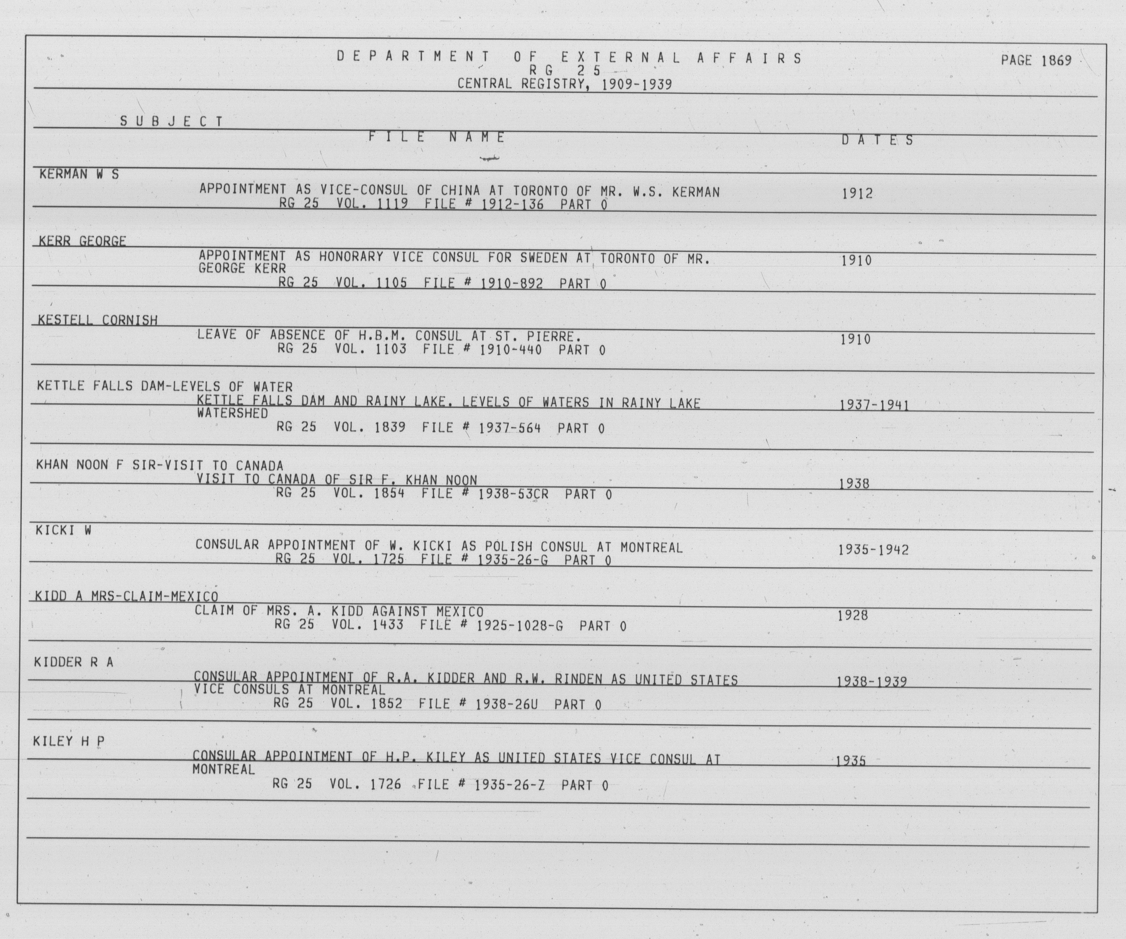 Department of External Affairs: "1939 Series" Central Registry files : Box List, 1909-1939 - 2393