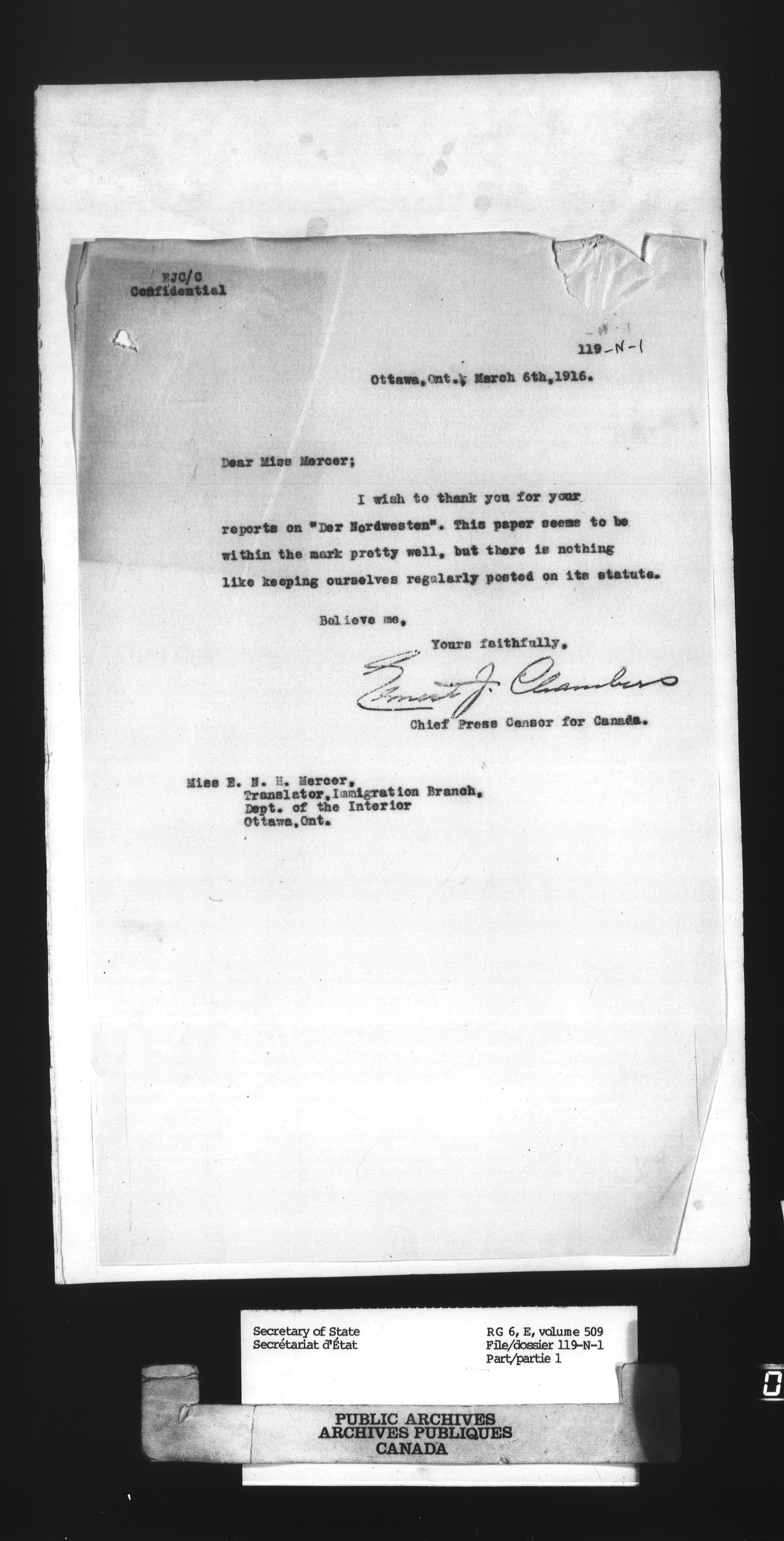 Secretary of State : Chief Press Censor : T-24