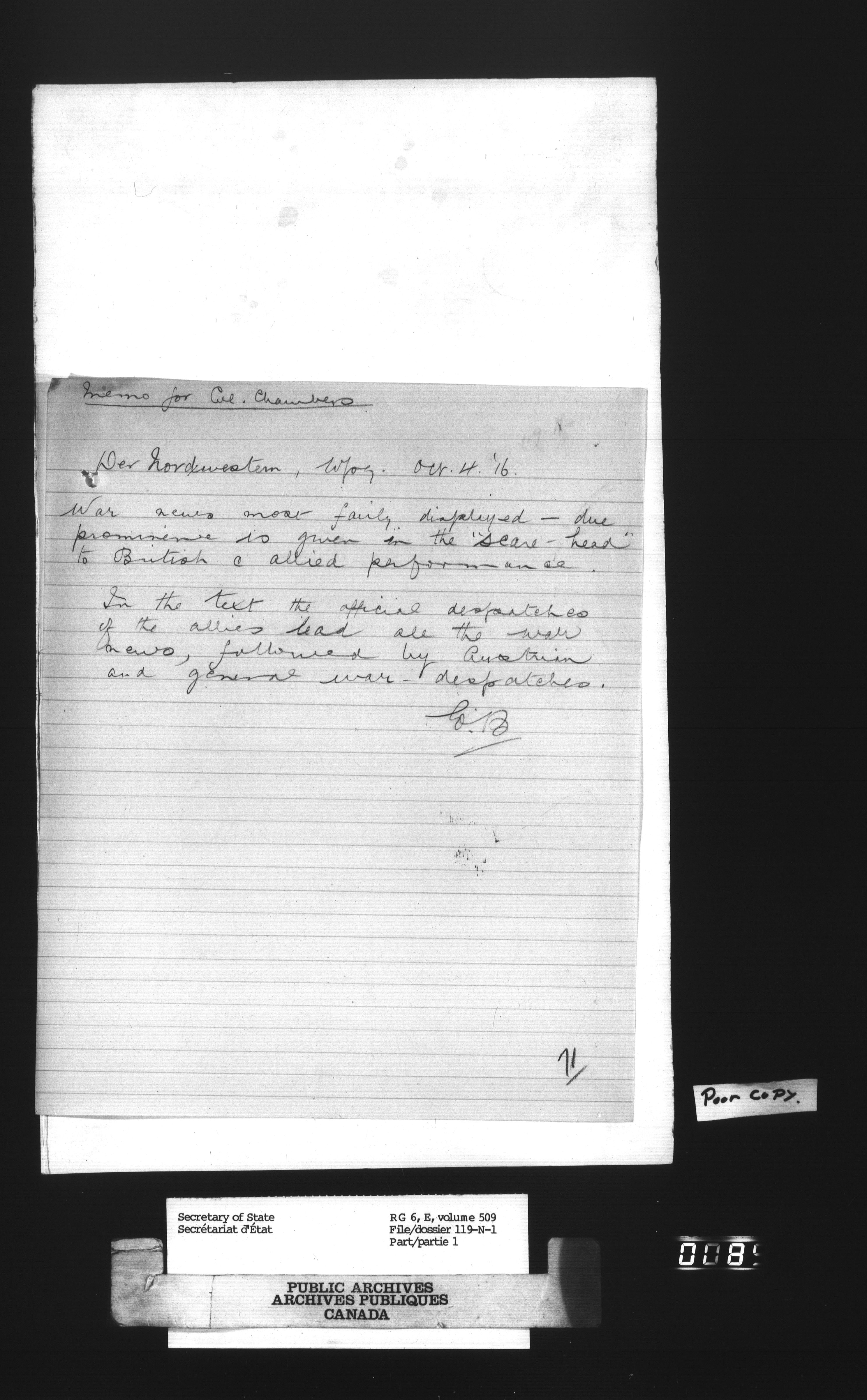 Secretary of State : Chief Press Censor : T-24