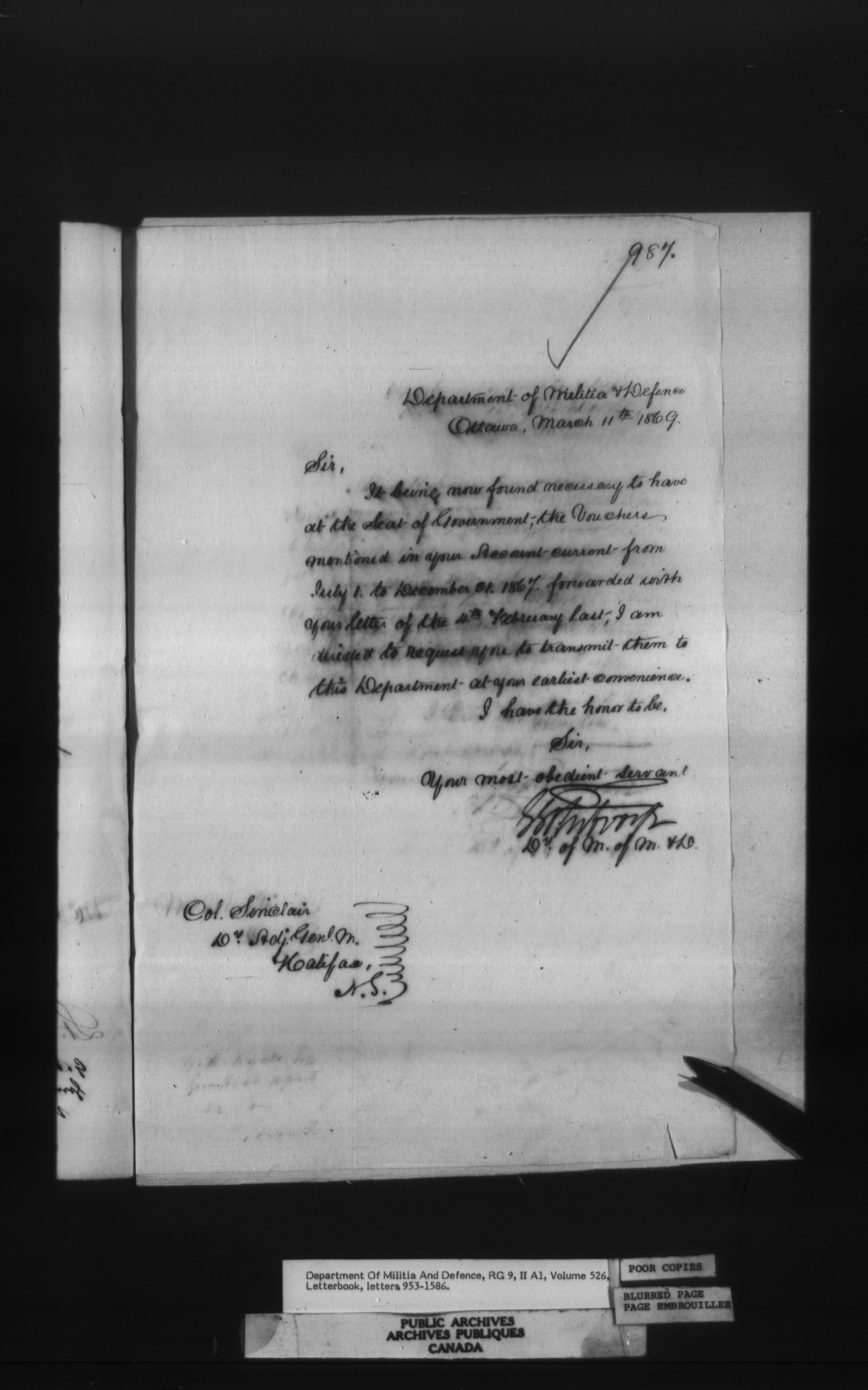 Letterbooks of the deputy minister and the adjutant general, 1868-1920 - 240