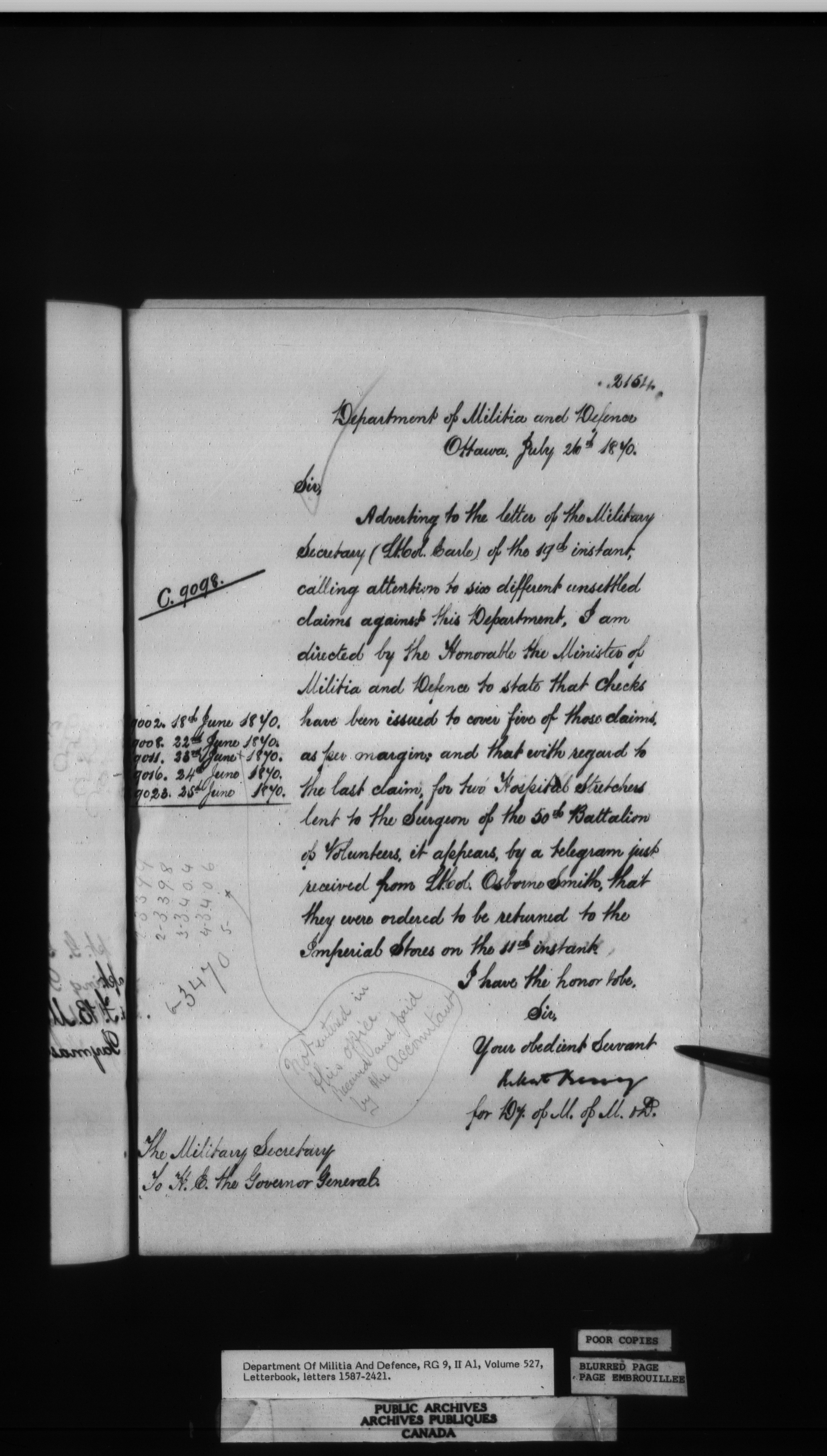 Letterbooks of the deputy minister and the adjutant general, 1868-1920 - 241