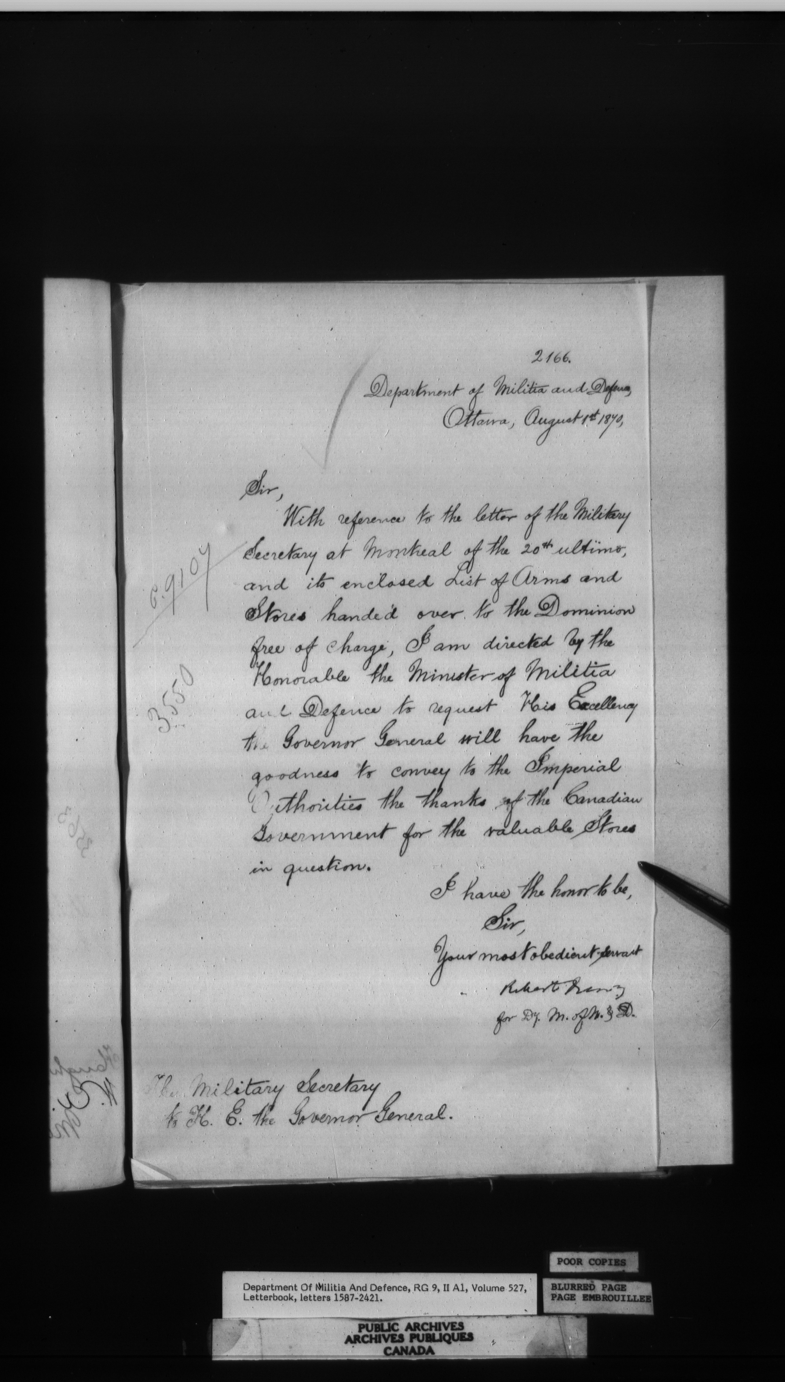Letterbooks of the deputy minister and the adjutant general, 1868-1920 - 241