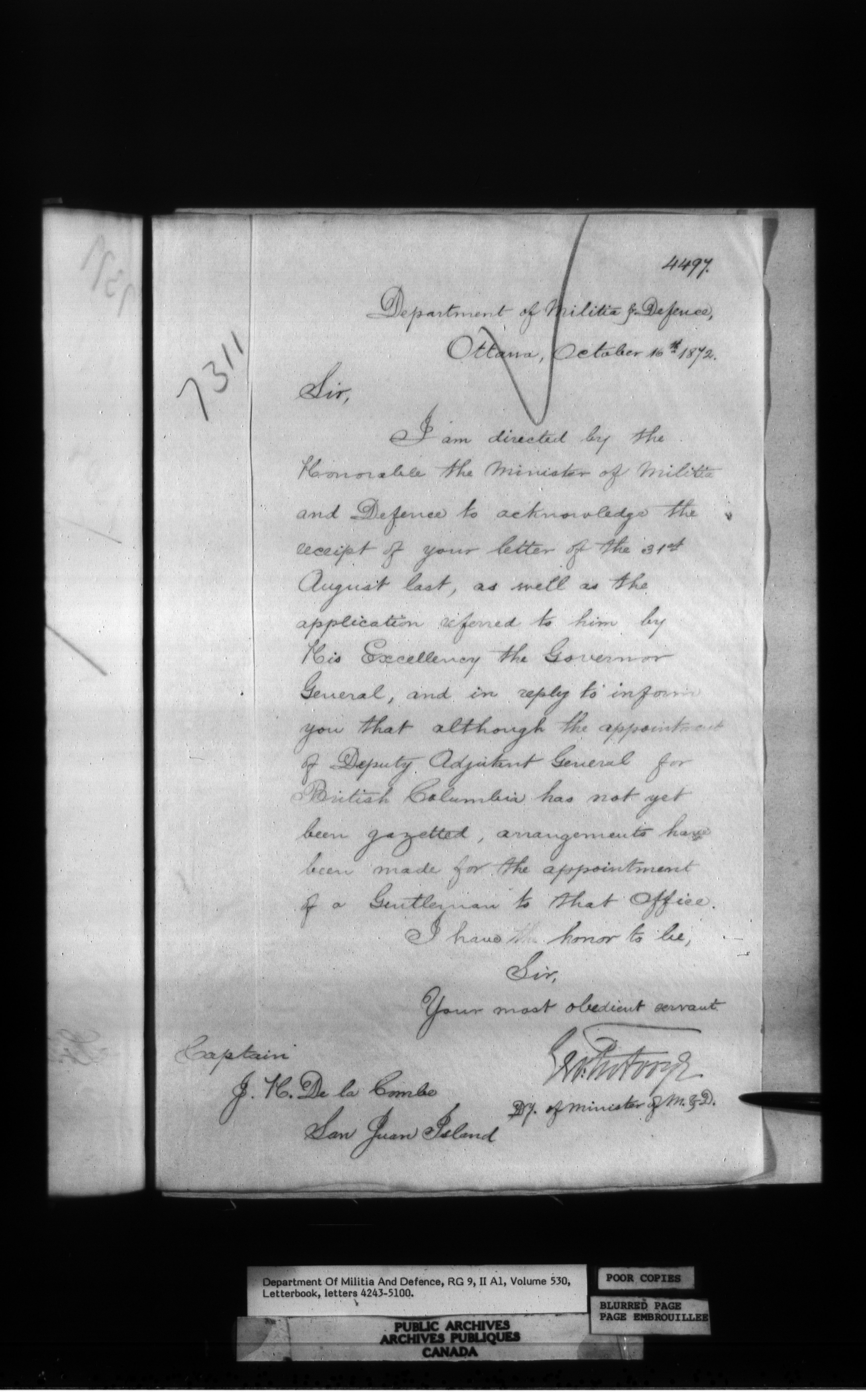 Letterbooks of the deputy minister and the adjutant general, 1868-1920 - 243