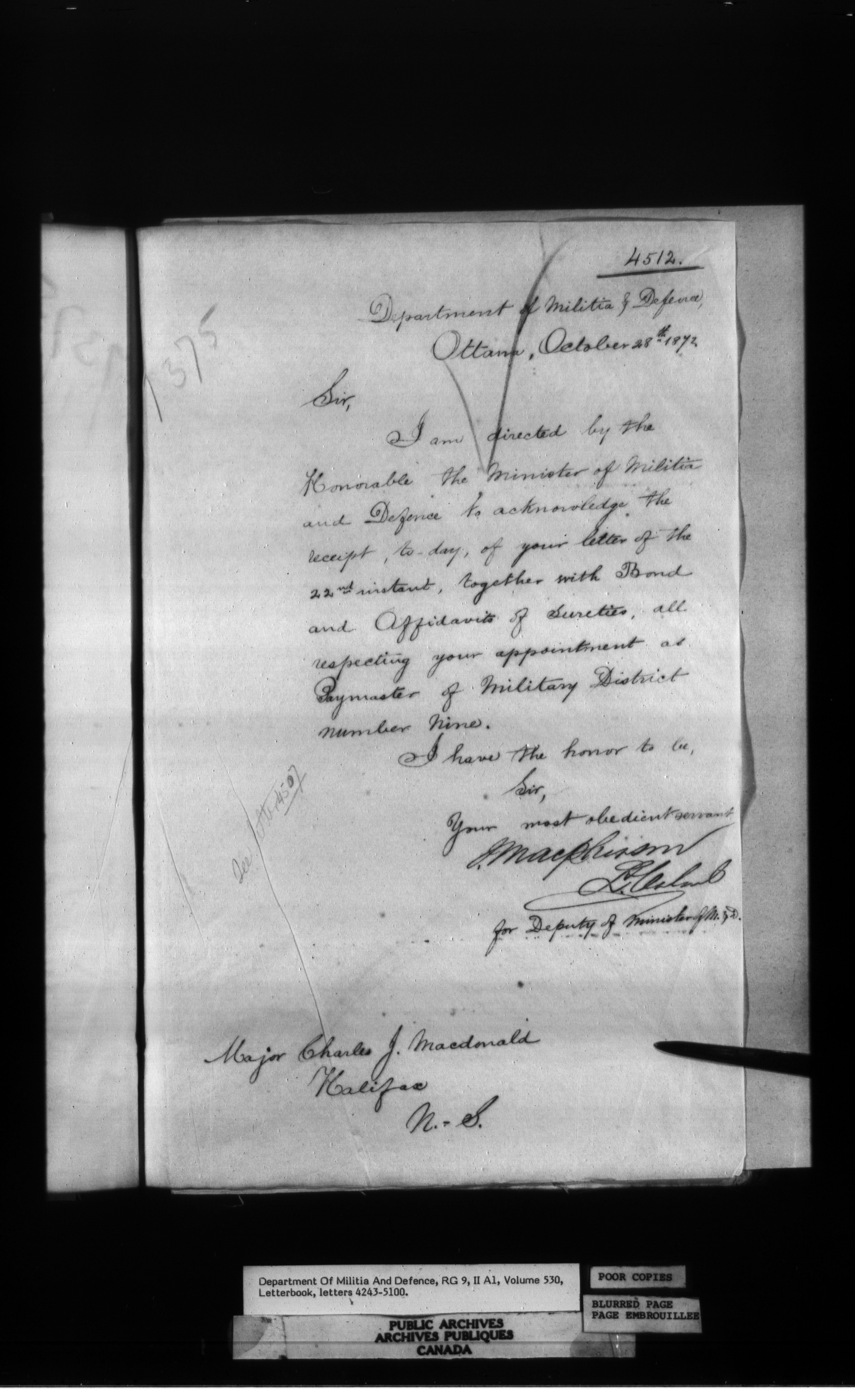 Letterbooks of the deputy minister and the adjutant general, 1868-1920 - 243