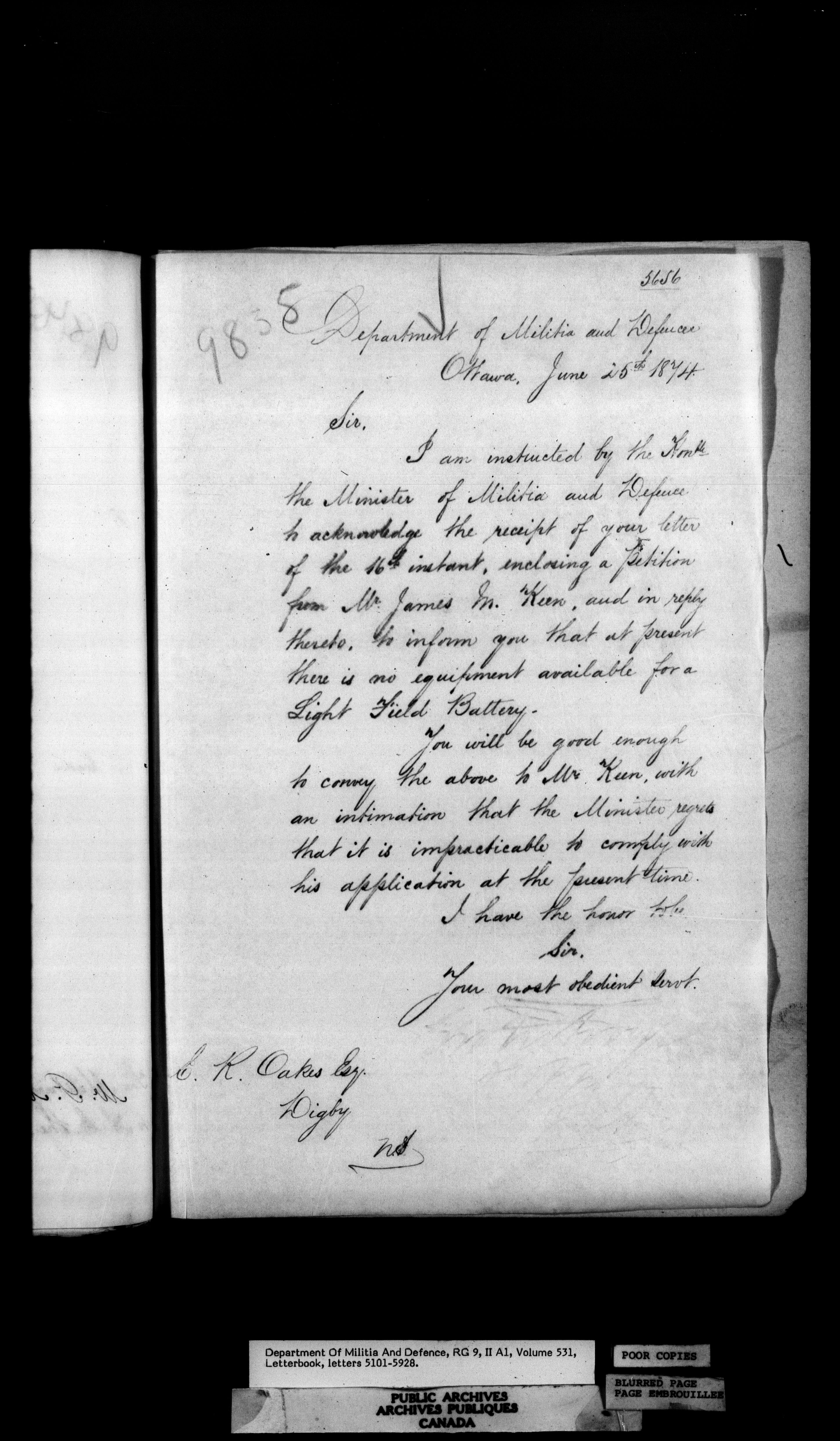 Letterbooks of the deputy minister and the adjutant general, 1868-1920 - 244