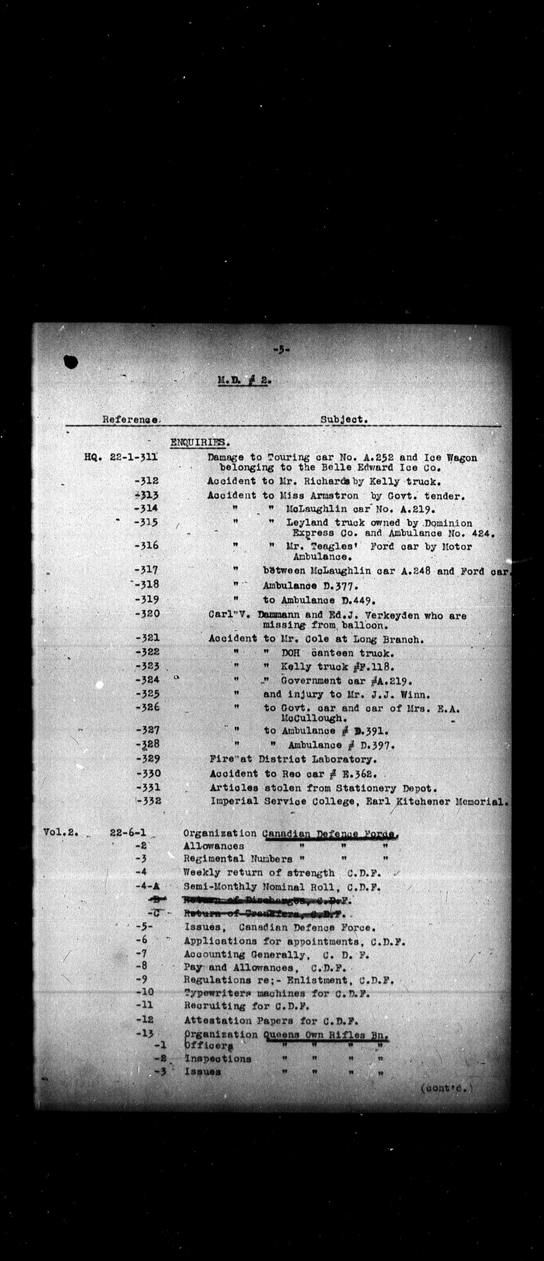Department of National Defence, Directorate of History and Heritage : Kardex system : T-2460