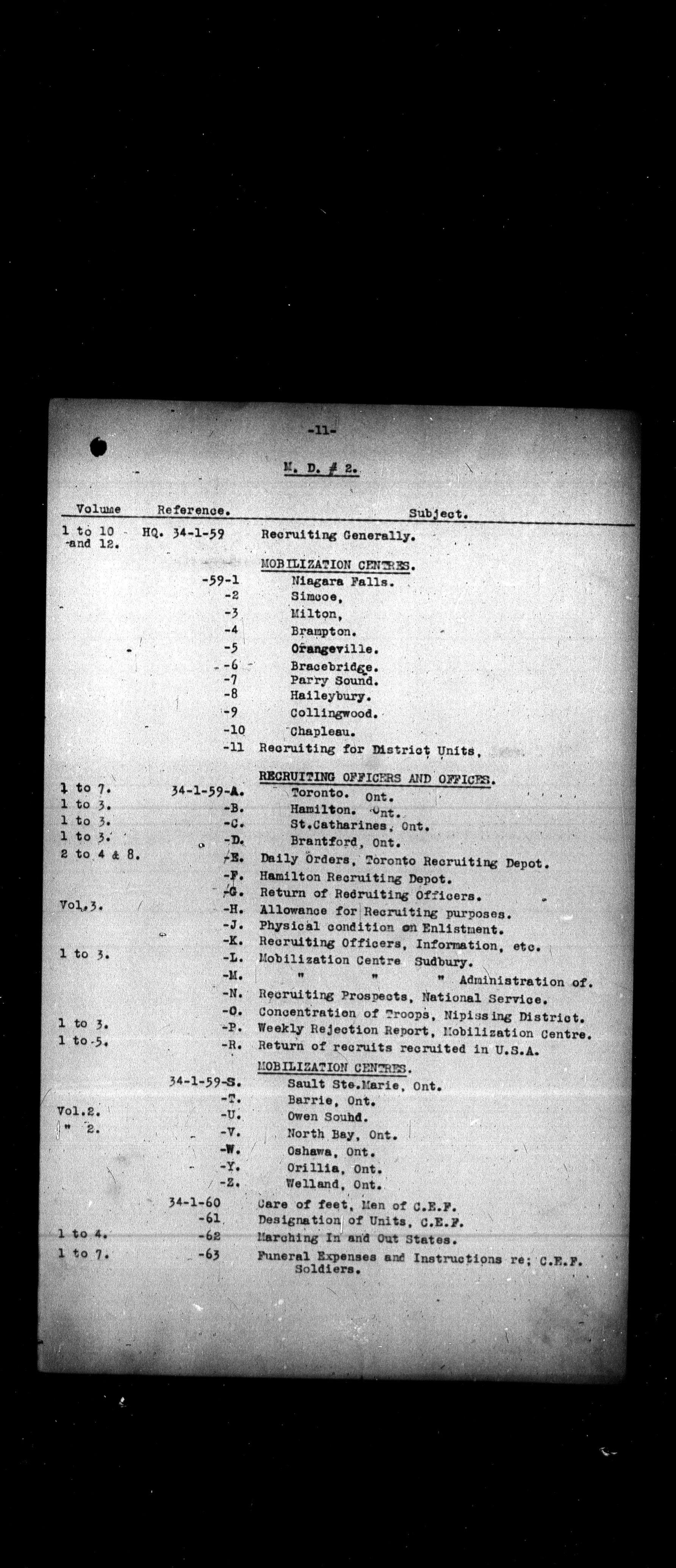 Military Districts correspondence file lists - 2460