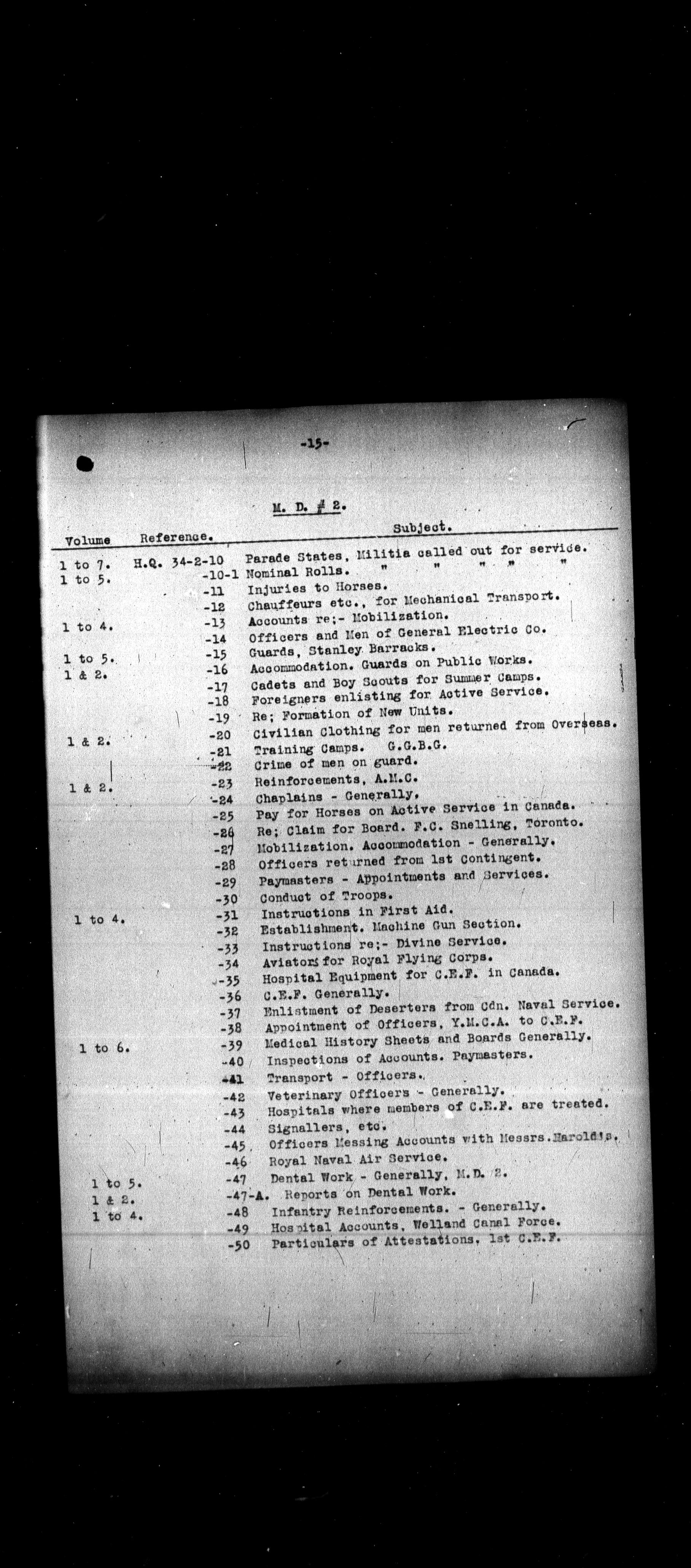 Military Districts correspondence file lists - 2460