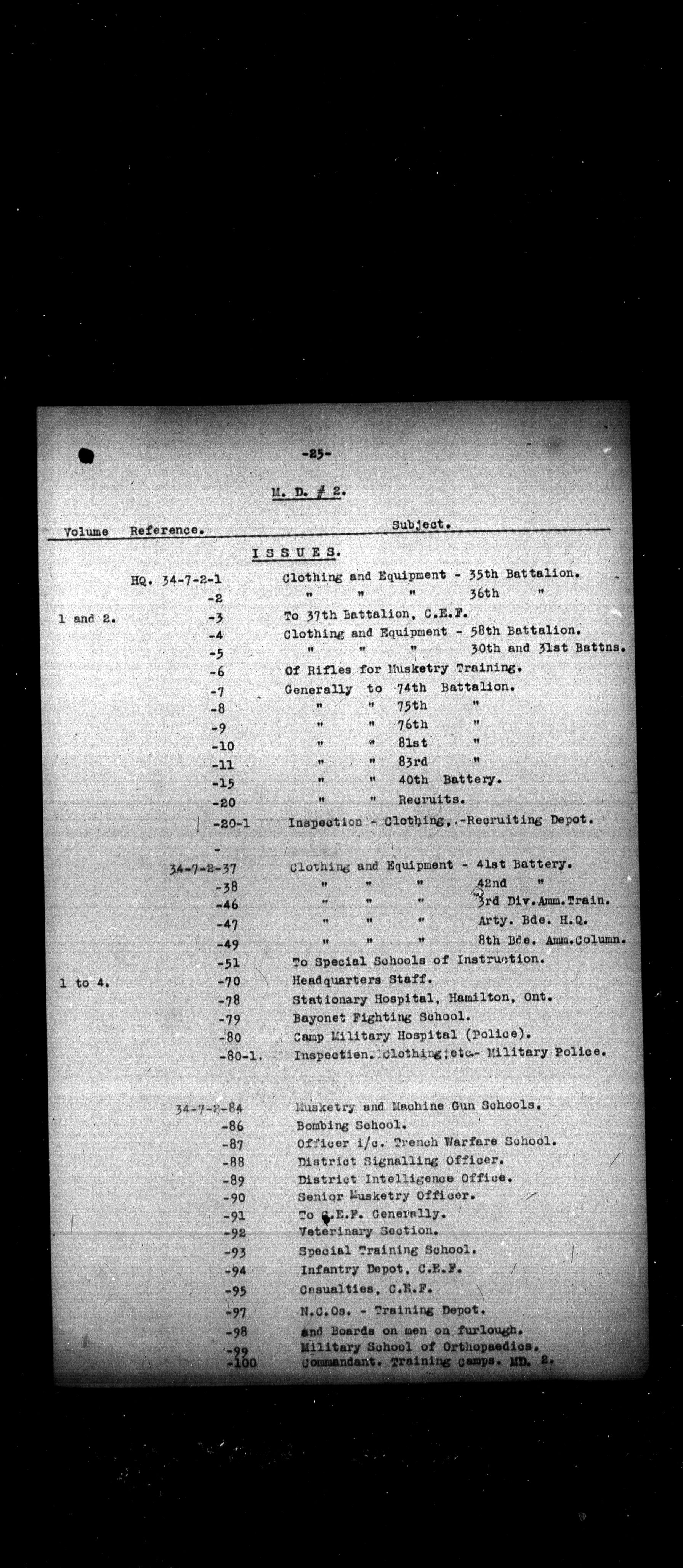 Military Districts correspondence file lists - 2460