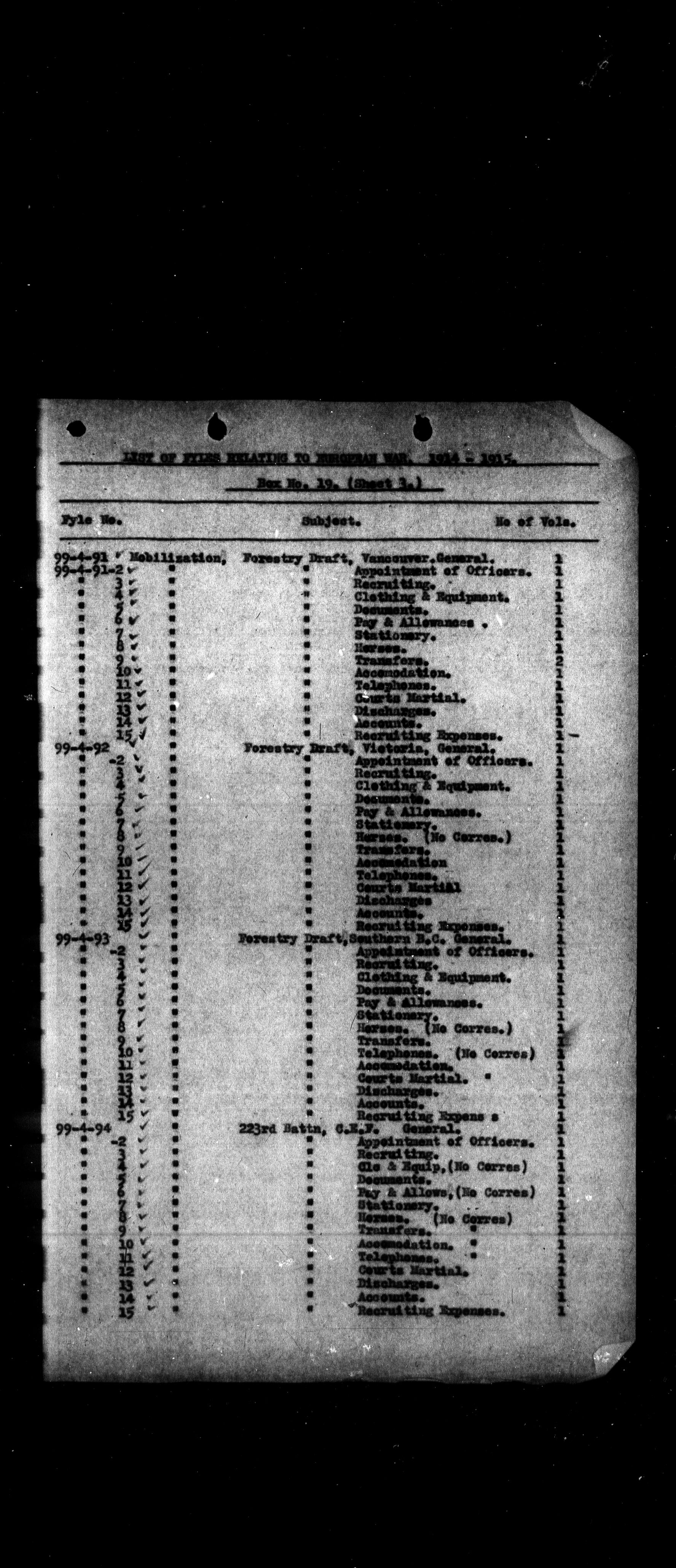 Military Districts correspondence file lists - 2460