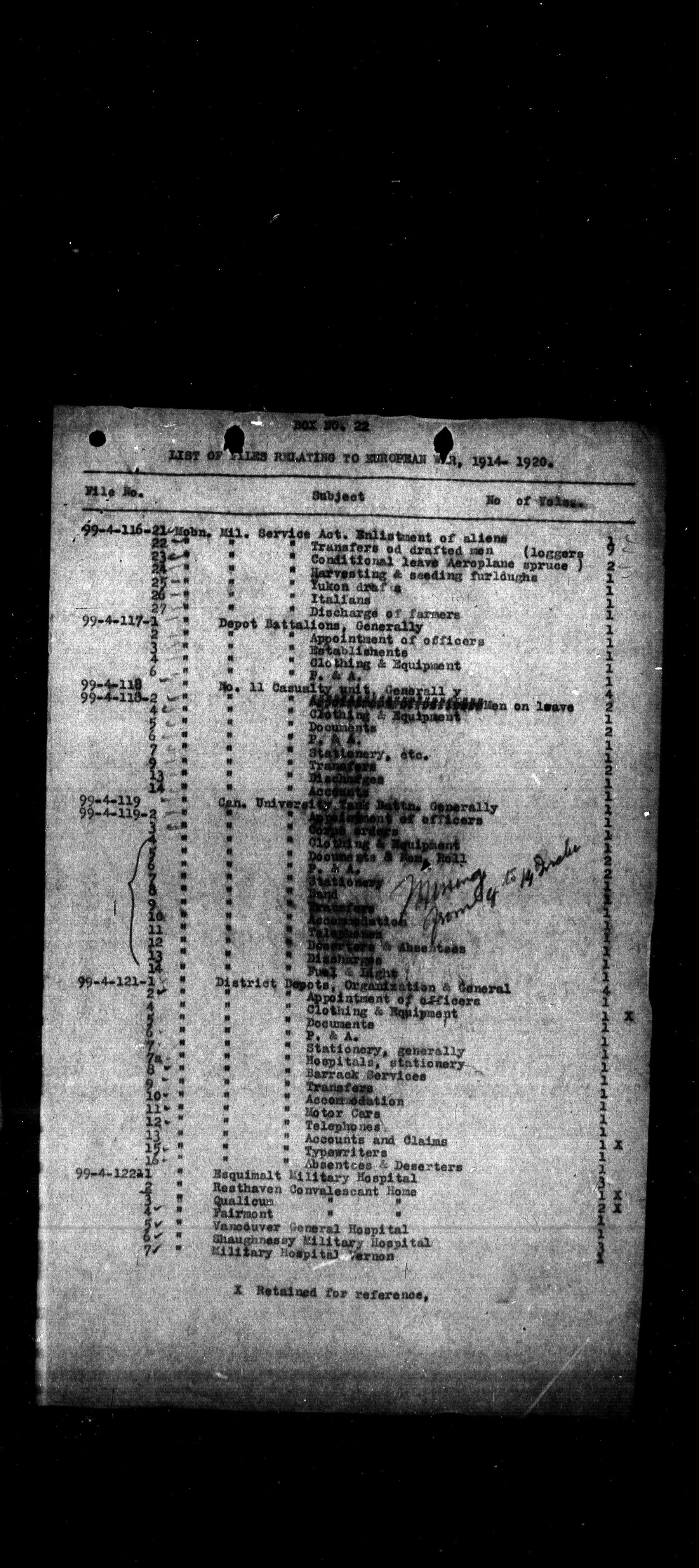 Military Districts correspondence file lists - 2460