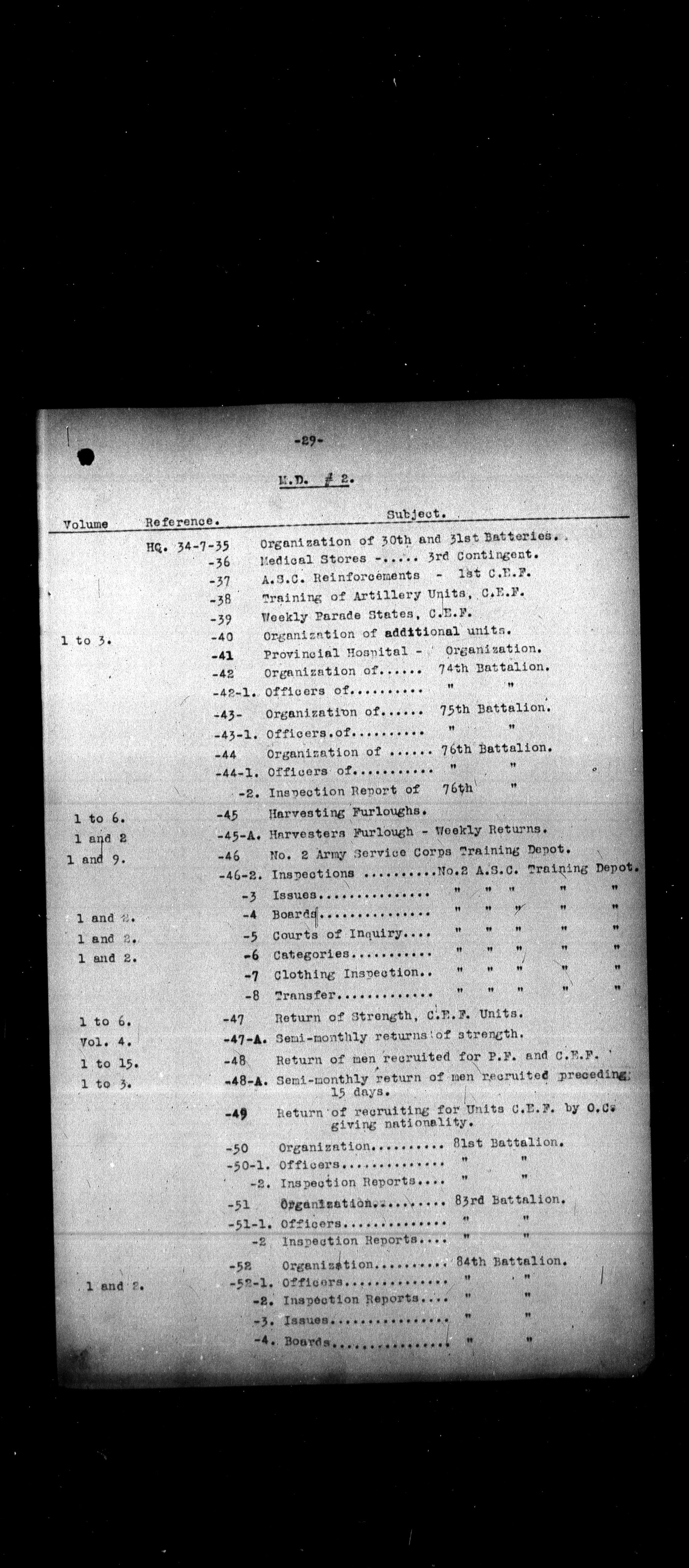 Military Districts correspondence file lists - 2460